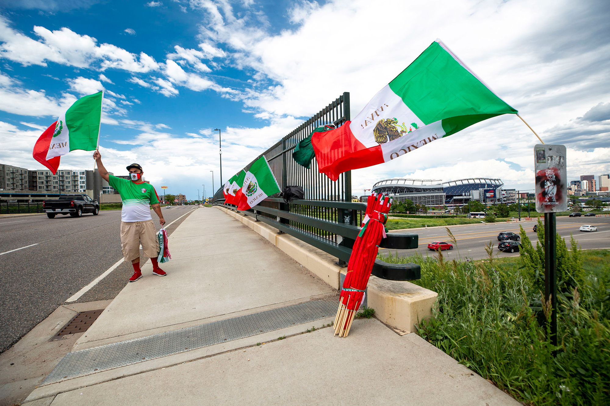 Support WBURFútbol, Flags And Fun: Getting Creative To Reach Unvaccinated Latinos In ColoradoPlay03:33Download AudioJohn DaleyJuly 10, 2021 ShareRaul Gomez sells Mexican flags Tuesday before the U.S. and Mexico national teams face off in the CONCACAF Nations League finals at Mile High Stadium. (Denverite)