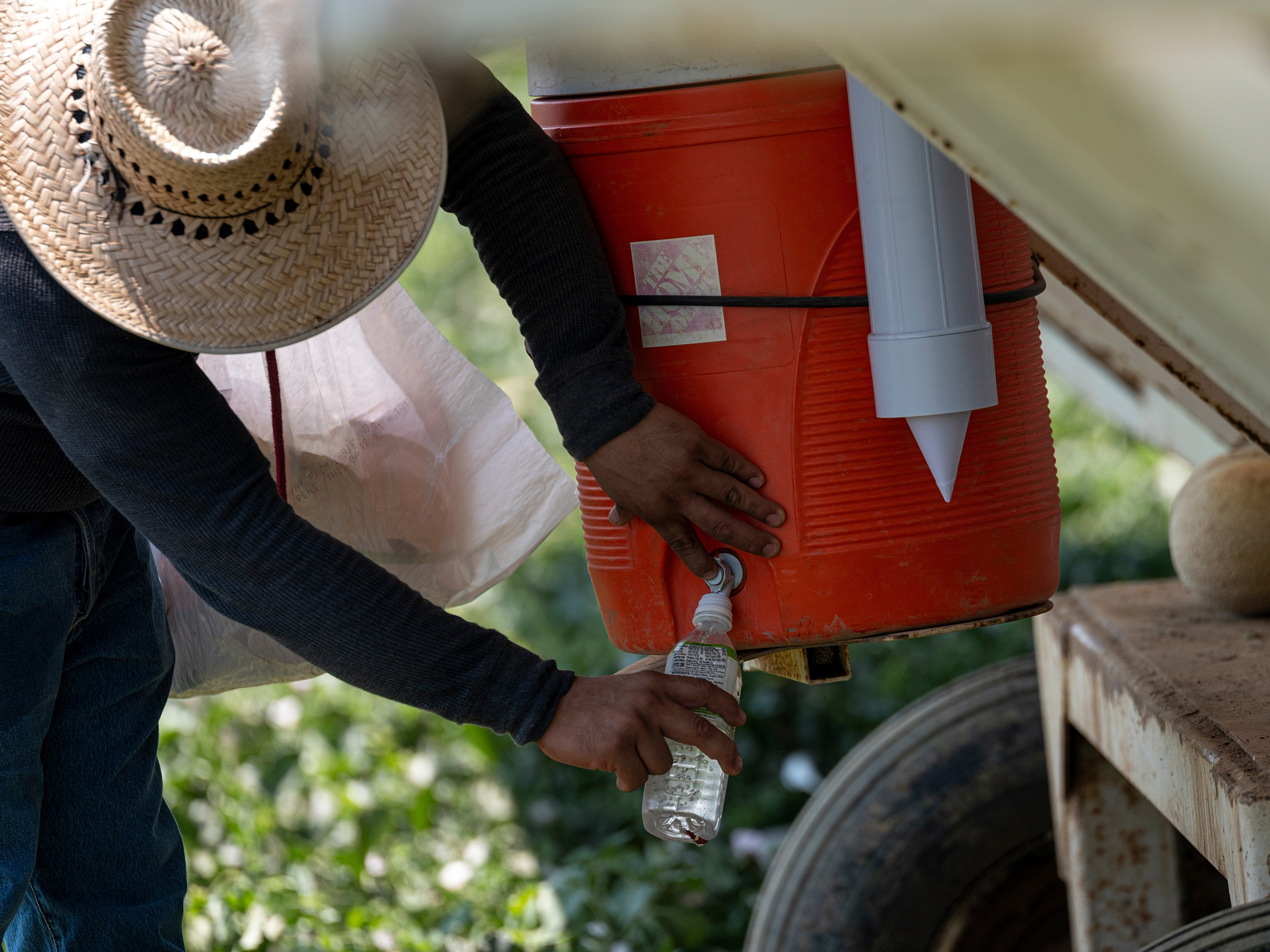 Support WBUROutdoor Workers Could Face Far More Dangerous Heat By 2065 Because Of Climate ChangeEric McDanielAugust 17, 2021 ShareA worker fills a bottle with water on a farm during a drought in Firebaugh, Calif., on July 13. (Bloomberg via Getty Images)