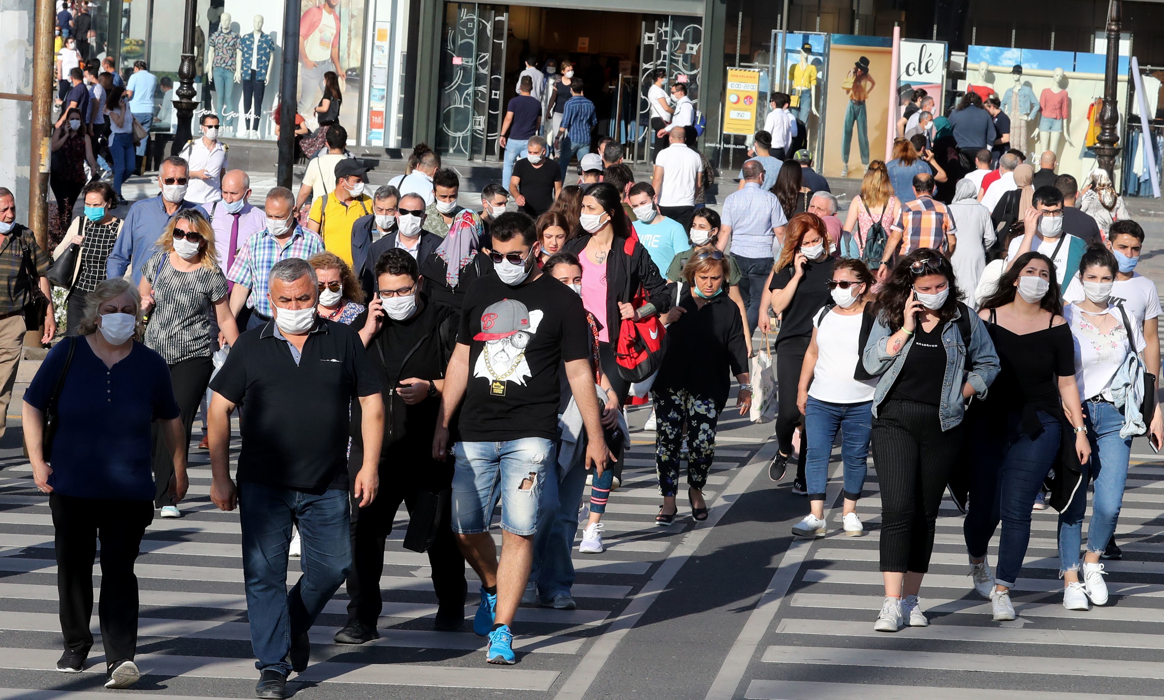 People don face masks to help keep the coronavirus at bay in June in Ankara, Turkey. But what about earlier recommendations to stay 6 feet away from others and limit close contact to 15 minutes? Are these still effective against the contagious delta variant? (AFP via Getty Images)
