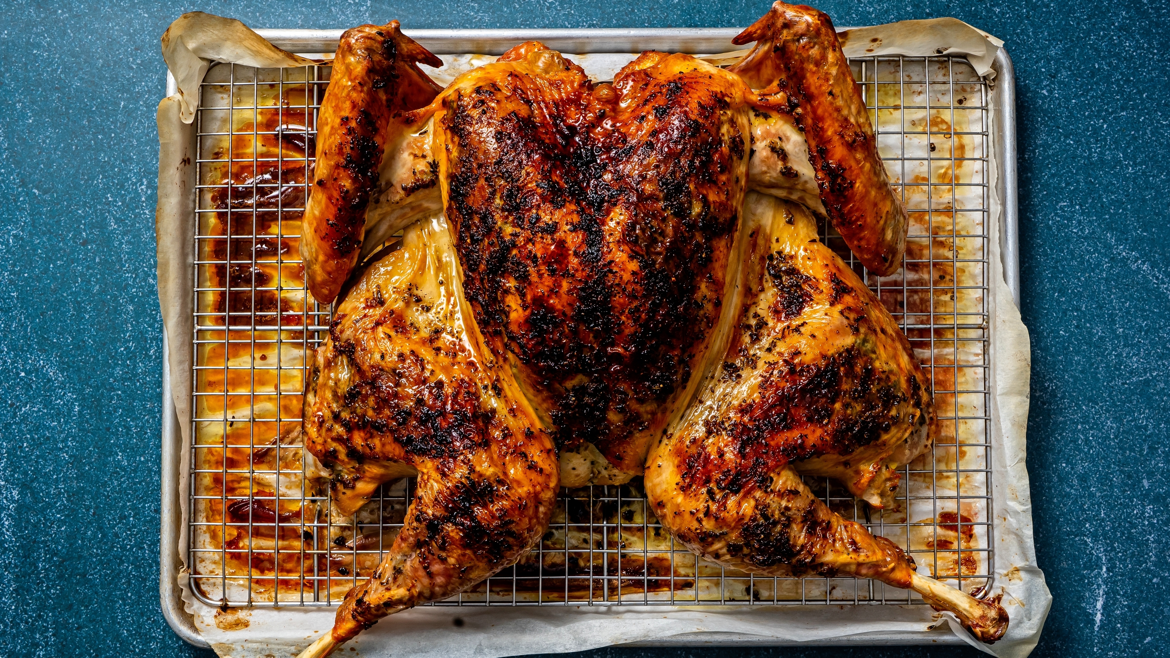 Support WBUROne Woman's Quest For The (Scientifically) Best TurkeyPlay45:11Download AudioMaria GodoyRebecca RamirezNovember 17, 2021 ShareKenji López-Alt says spatchcocking the turkey is the best way to overcome the common problem of light meat overcooking by the time dark meat is ready. (The Washington Post via Getty Im)