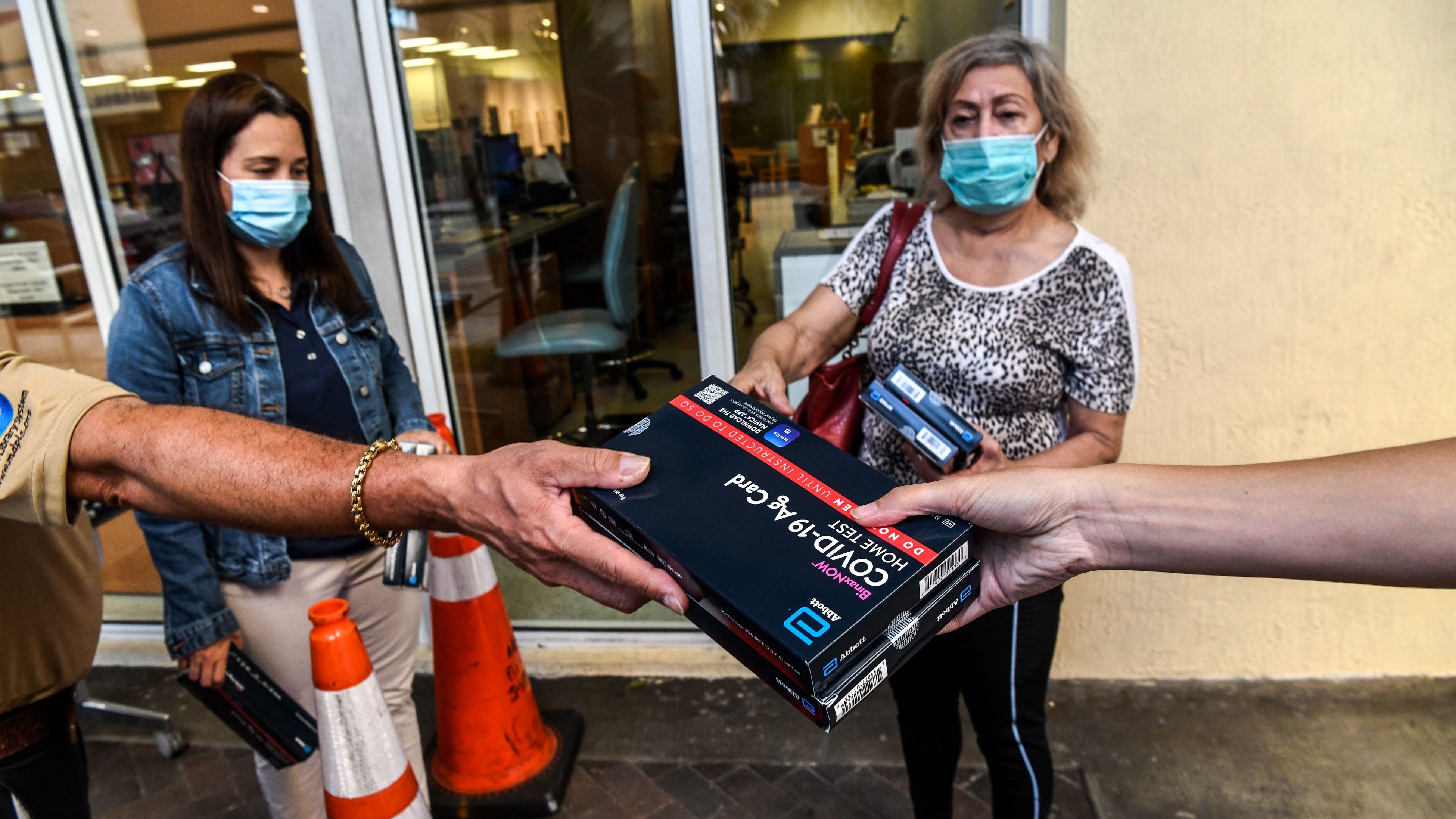 Support WBURWhy COVID Tests Are Still So Scarce And Expensive — And When That Could ChangePlay11:31Download AudioJanuary 12, 2022facebookEmailEmployees of the Miami-Dade Public Library System distribute Covid-19 home rapid test kits in Miami, Florida, on January 8, 2022. (AFP via Getty Images)