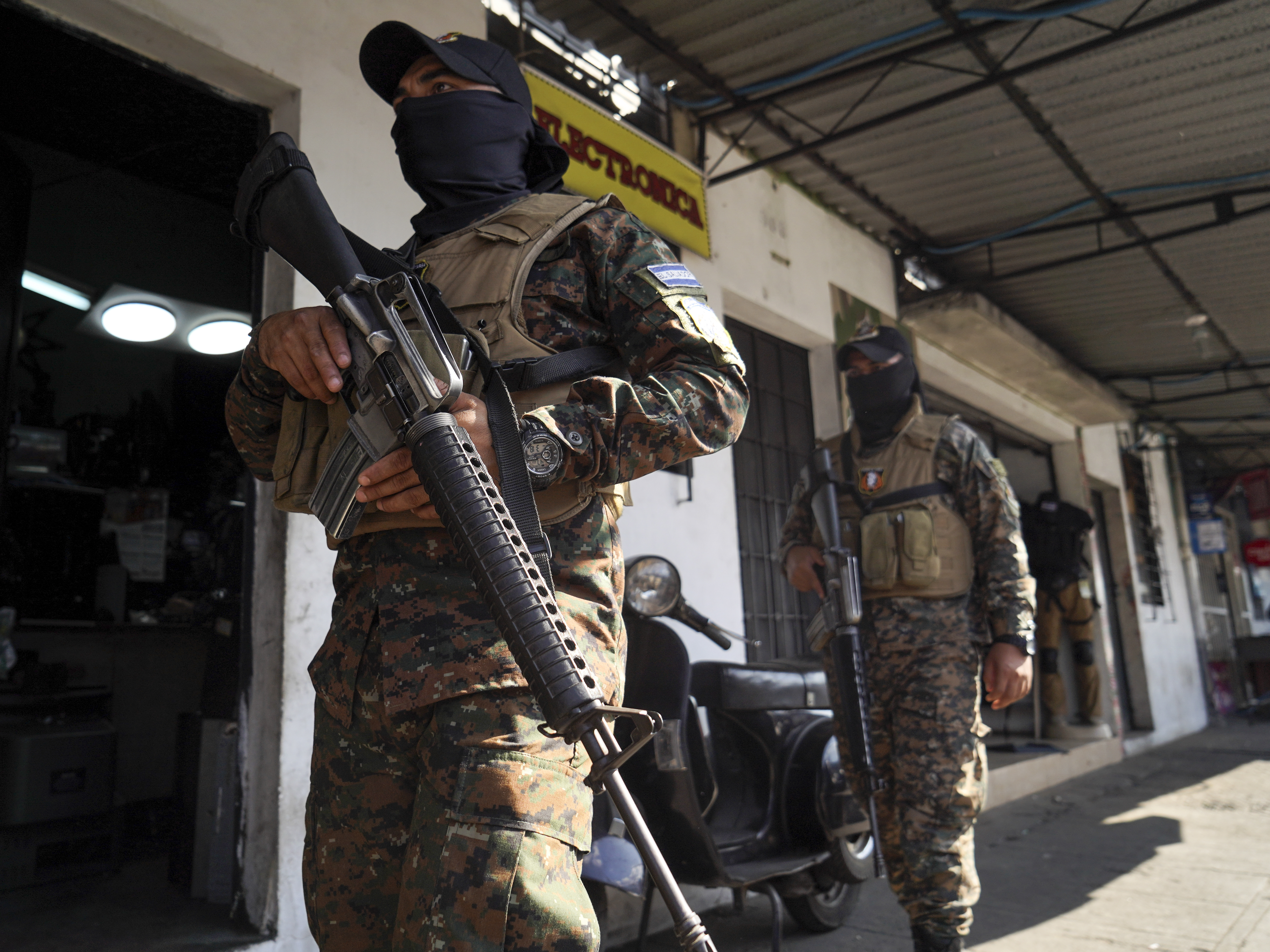 Support WBUREl Salvador grabs 1,000 gang suspects in response to weekend killingsMarch 29, 2022The Associated PressfacebookEmailMilitary guard a custody center in San Salvador, El Salvador, on Tuesday. (Anadolu Agency via Getty Images)