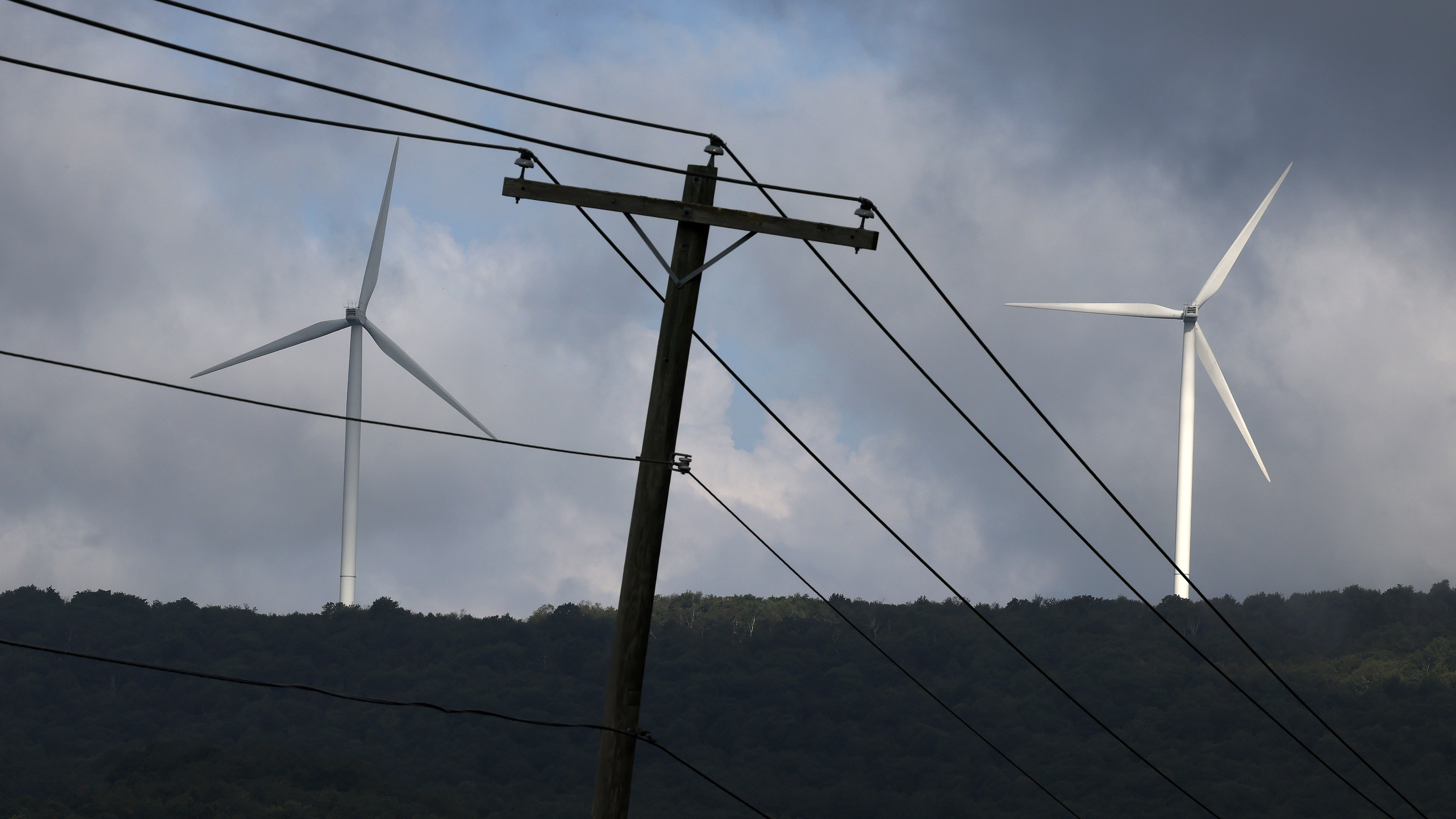 Turbines from the Roth Rock wind farm spin on the spine of Backbone Mountain near Oakland, Md., on August 23. The International Energy Agency says renewable energy projects are getting a boost of investment from governments around the world. (Getty Images)