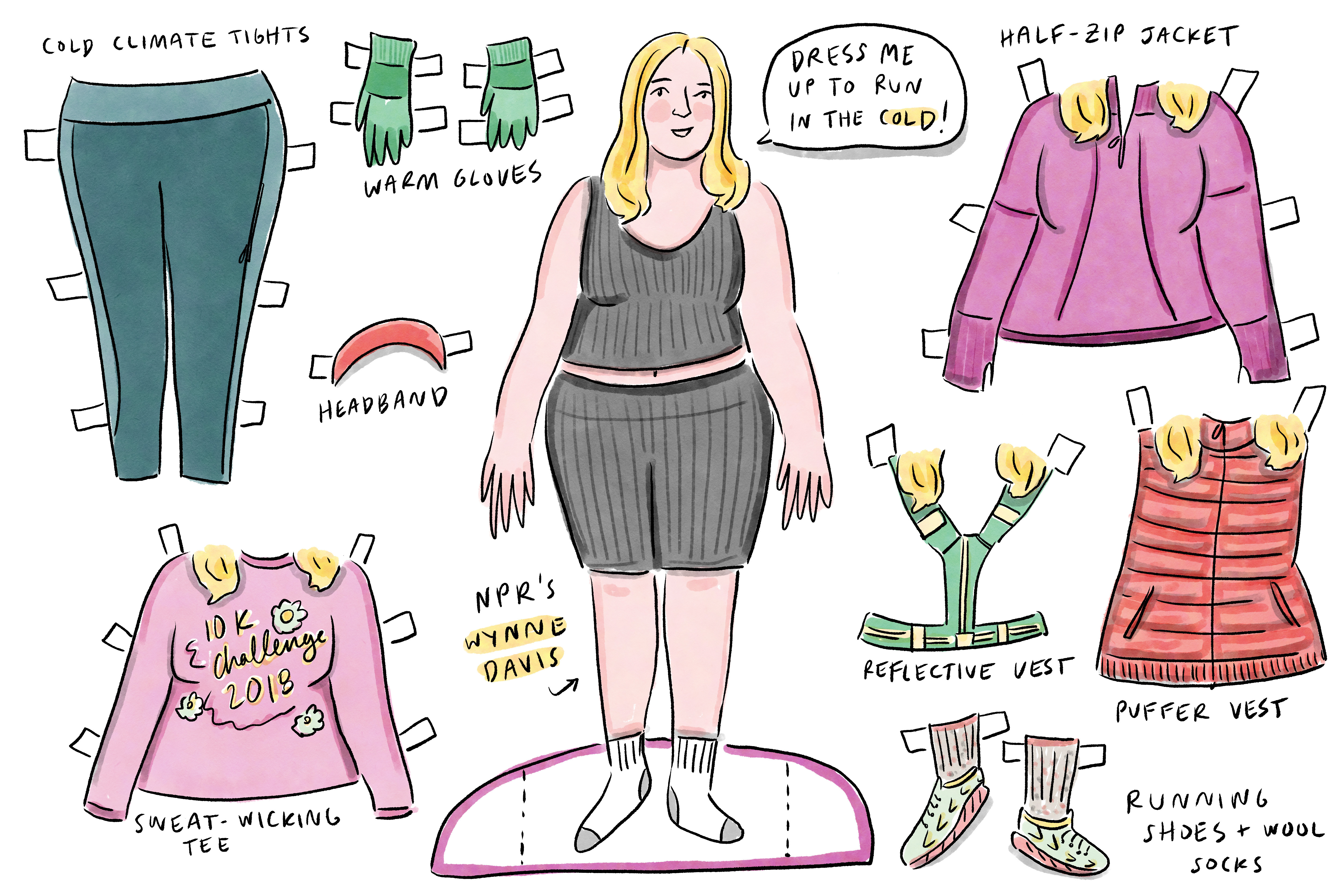 Practice gearing up for a cold-weather run by printing and cutting out this paper doll of NPR's Wynne Davis. It looks best when you print on card stock and in color, but regular paper is fine too. Download the file here. (Malaka Gharib/NPR)