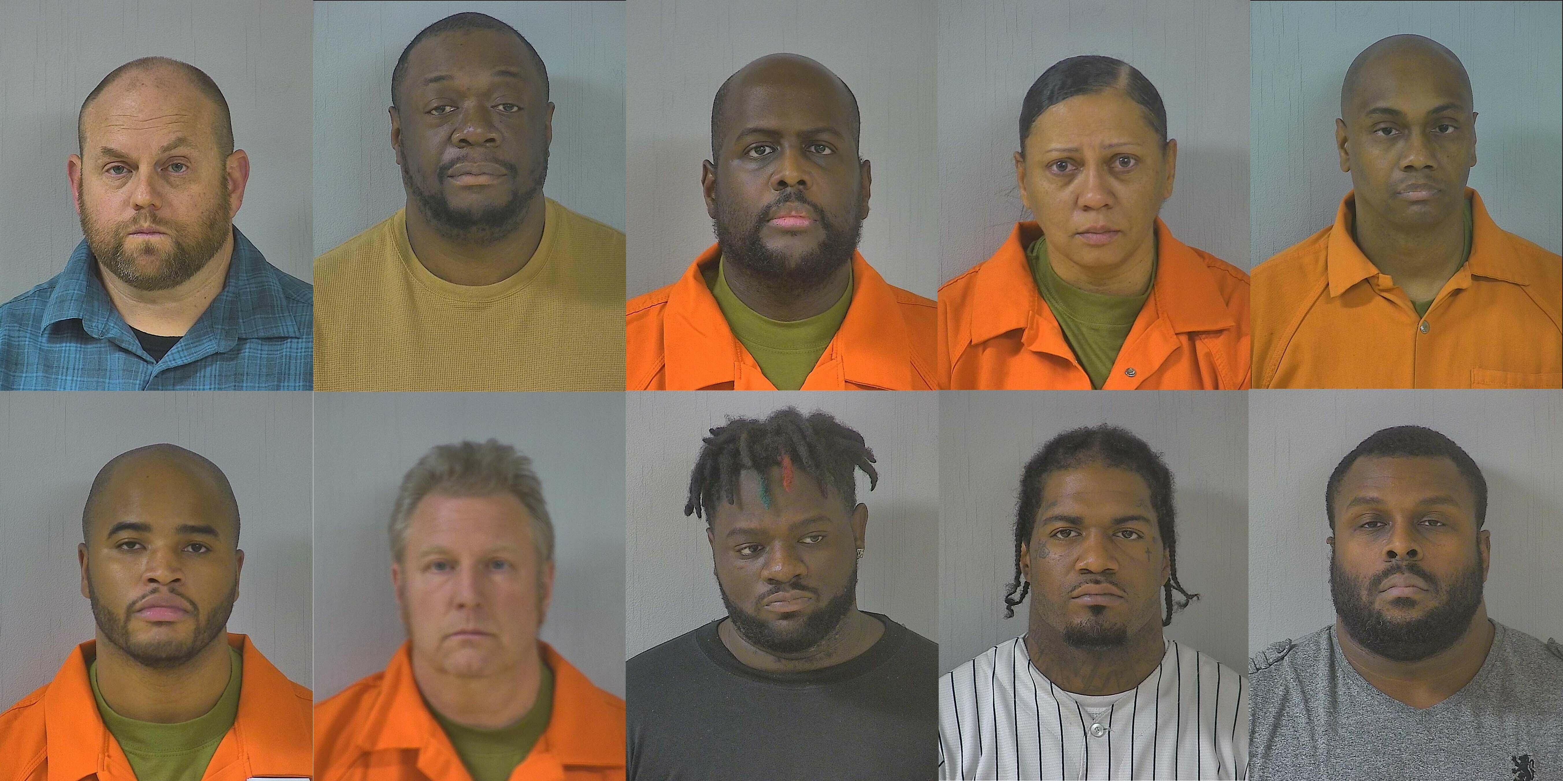 Charged with second-degree murder in the death of Irvo Noel Otieno were: (top row, from left) Henrico County Sheriff's Deputies Bradley Disse, Brandon Rodgers, Dwayne Bramble, Tabitha Levere, Jermaine Branch (bottom row, from left), Kaiyell Sanders and Randy Boyer, Central State Hospital workers Darian Blackwell, Sadarius Williams and Wavie Jones. (Meherrin River Regional Jail)