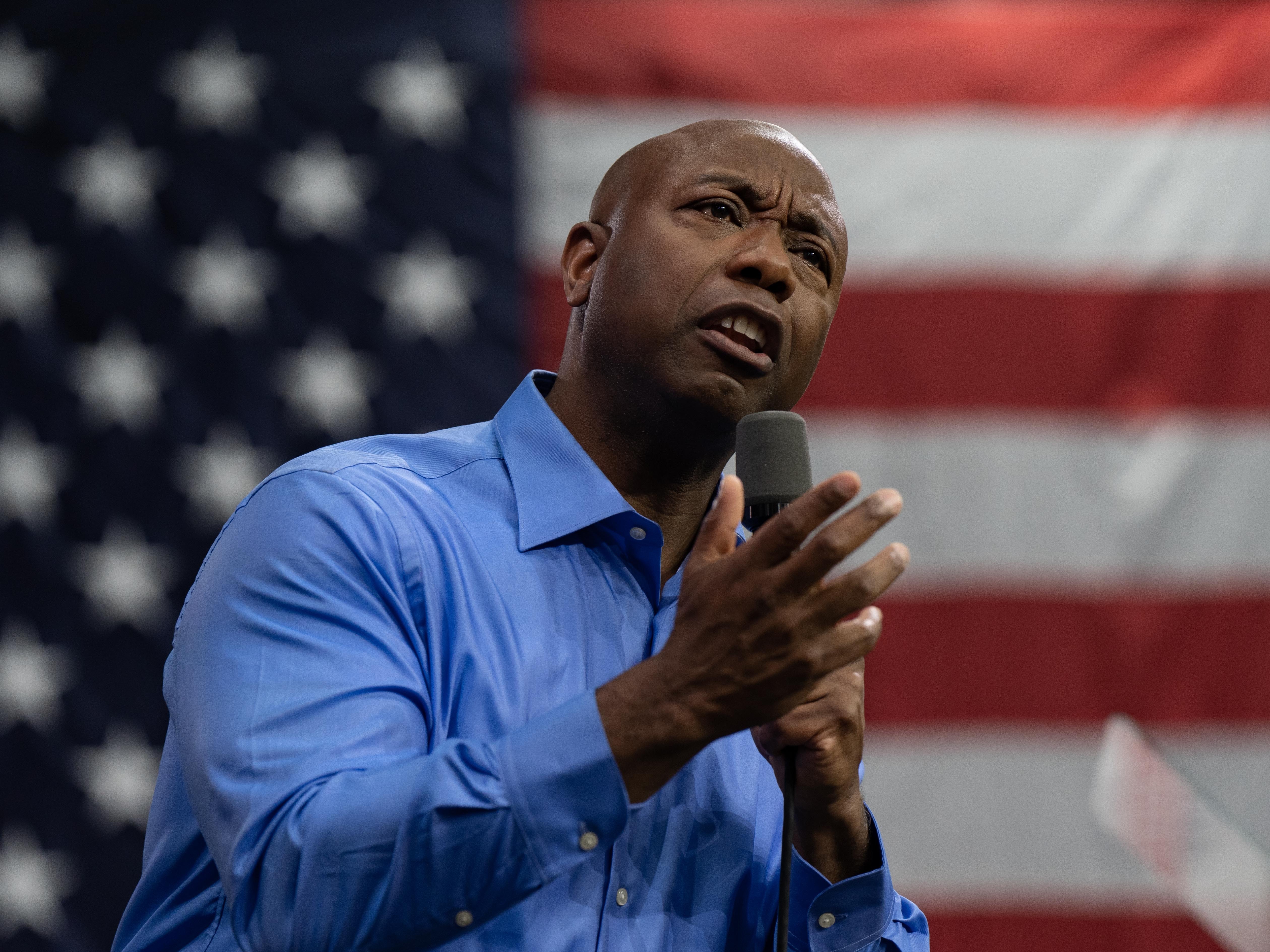U.S. Senator Tim Scott (R-S.C.) announces his run for the 2024 Republican presidential nomination at a campaign event on May 22, 2023 in North Charleston, South Carolina. Scott, who is the ranking member of the Senate Banking, Housing, and Urban Affairs Committee, joins 5 other Republicans currently running in the 2024 Presidential race. (Getty Images)