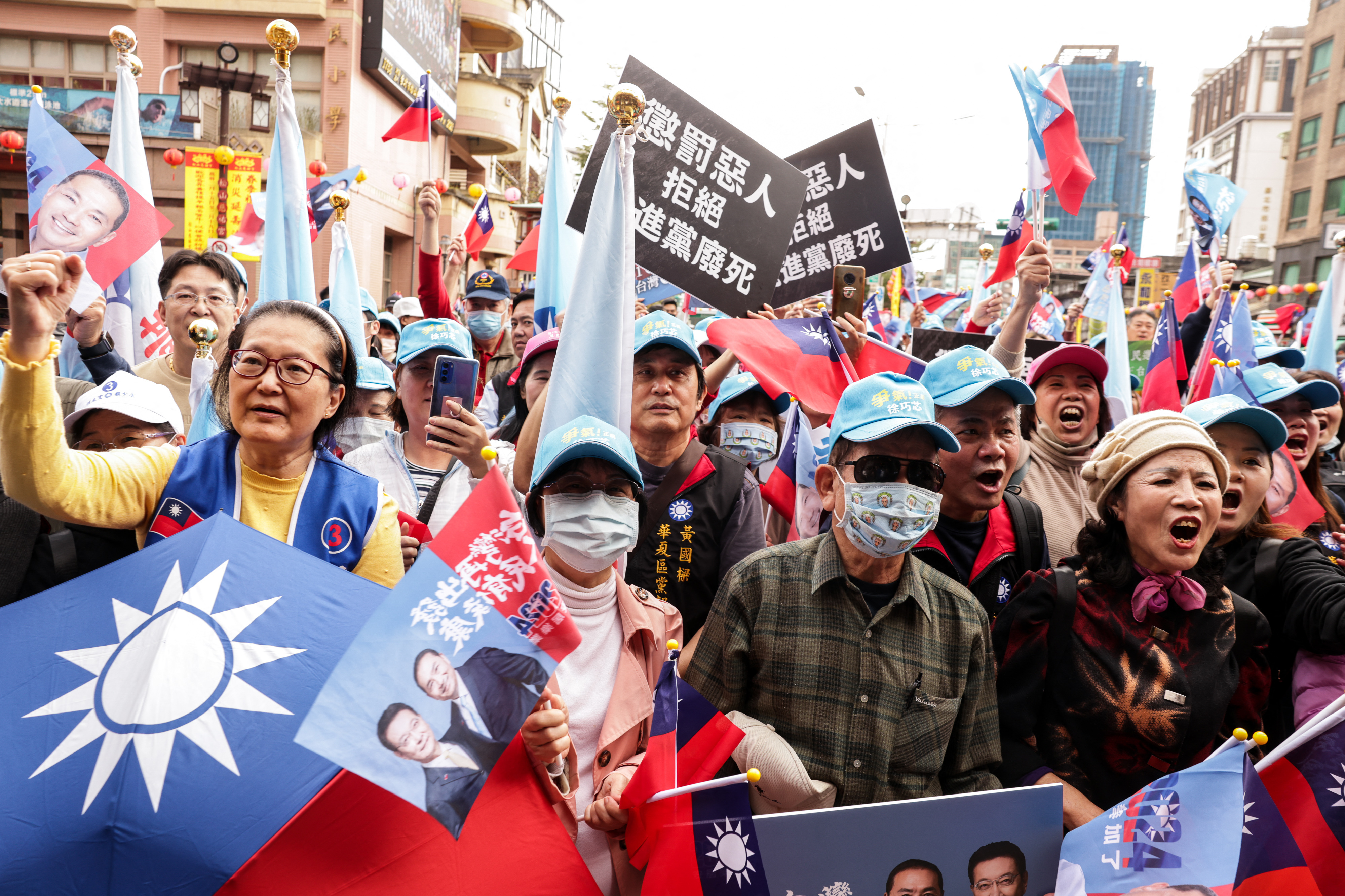 Support WBURChina's Influence on Taiwan's Politics and Taiwan's Influence on Chinese Pop CulturePlay10:53Download AudioEmily FengGreg DixonJanuary 09, 2024 ShareSupporters gather to support KMT presidential candidate Hou Yu-ih outside of a local temple in Taipei on January 9, 2024. (AFP via Getty Images)