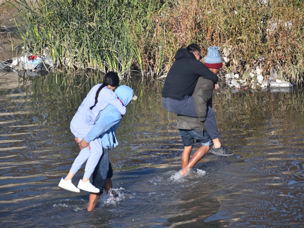 Migrants cross the Rio Grande from Mexico near El Paso, Texas. A new law makes illegal entry into Texas from a foreign country a state crime. It also authorizes a state judge to order someone to return to Mexico after their arrest. (The Texas Newsroom)