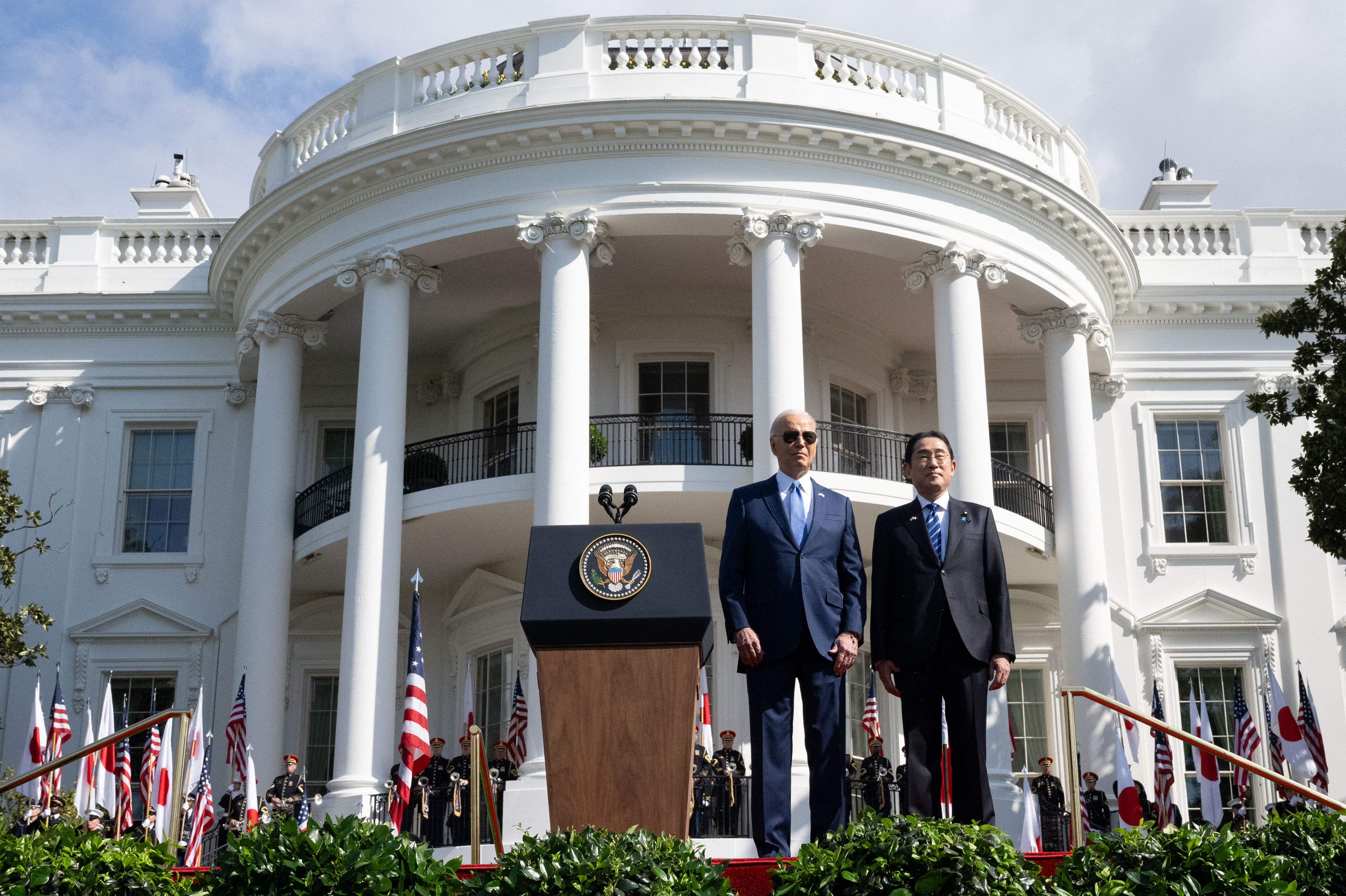 Support WBURBiden is hosting Japan's Kishida. But the Nippon Steel deal is not on the agendaDeepa ShivaramFranco OrdoñezUpdated April 10, 2024 SharePresident Biden and Japanese Prime Minister Fumio Kishida stand together during a state visit ceremony at the White House. (AFP via Getty Images)This article was originally published on April 10, 2024.