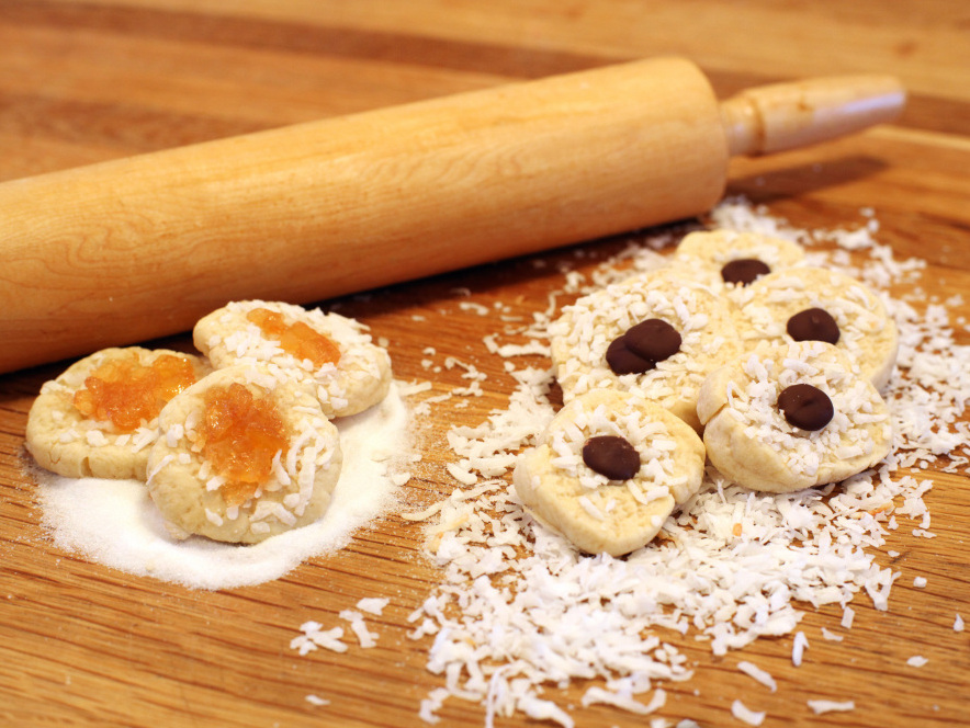 Support WBURChocolate Coconut ThumbprintsRamin GaneshramDecember 08, 2010 ShareThe Chocolate Coconut Thumbprints (right) are one variation using the Coconut Sugar Cookie dough; jam can also be used as a filling (left).
