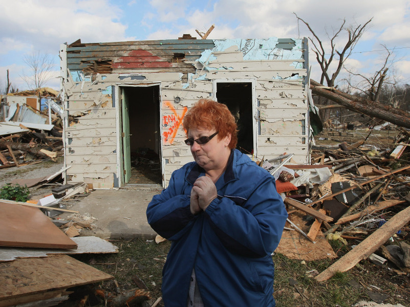 Support WBURToddler's Death Brings Toll From Latest Tornadoes To 39PlayDownload AudioMark MemmottMarch 05, 2012 ShareIn Henryville, Ind., on Sunday, Janet Clark stood outside what remains of her home, which was destroyed in Friday's tornado. (Getty Images)