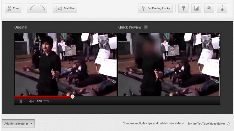 Support WBURTo Help Dissidents, YouTube Introduces Face-Blurring ToolEyder PeraltaJuly 18, 2012 ShareA screenshot of how the face-blurring technology works. (YouTube)
