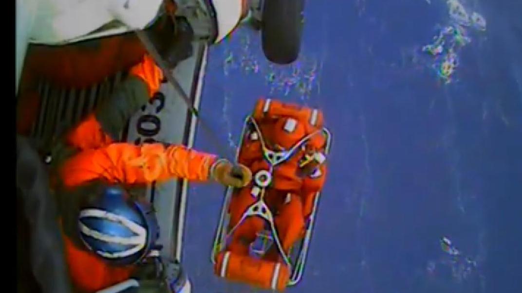 A screen grab from video of the Coast Guard's rescue operation that saved 14 sailors from the HMS Bounty on Monday. (U.S. Coast Guard)