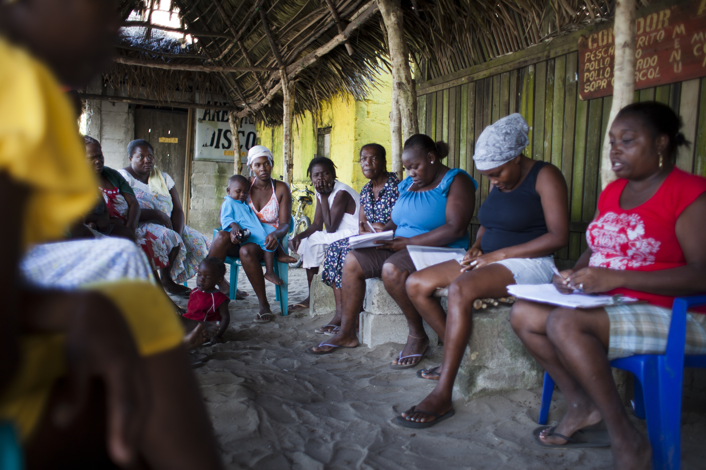 Women meet during a support group for those who have HIV and their friends and family on Jan. 17 in Triunfo de la Cruz. These kinds of support groups are an important part of making people feel comfortable with their diagnosis and seeking treatment. (Pulitzer Center)