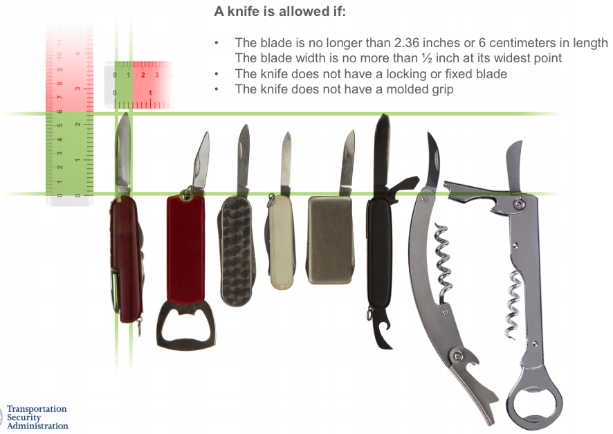 Support WBURTSA Will Lift Ban Of Small Knives, Wiffle Ball Bats Aboard PlanesBrian NaylorMarch 05, 2013 ShareA TSA illustration of knives that will be allowed on planes. (TSA)