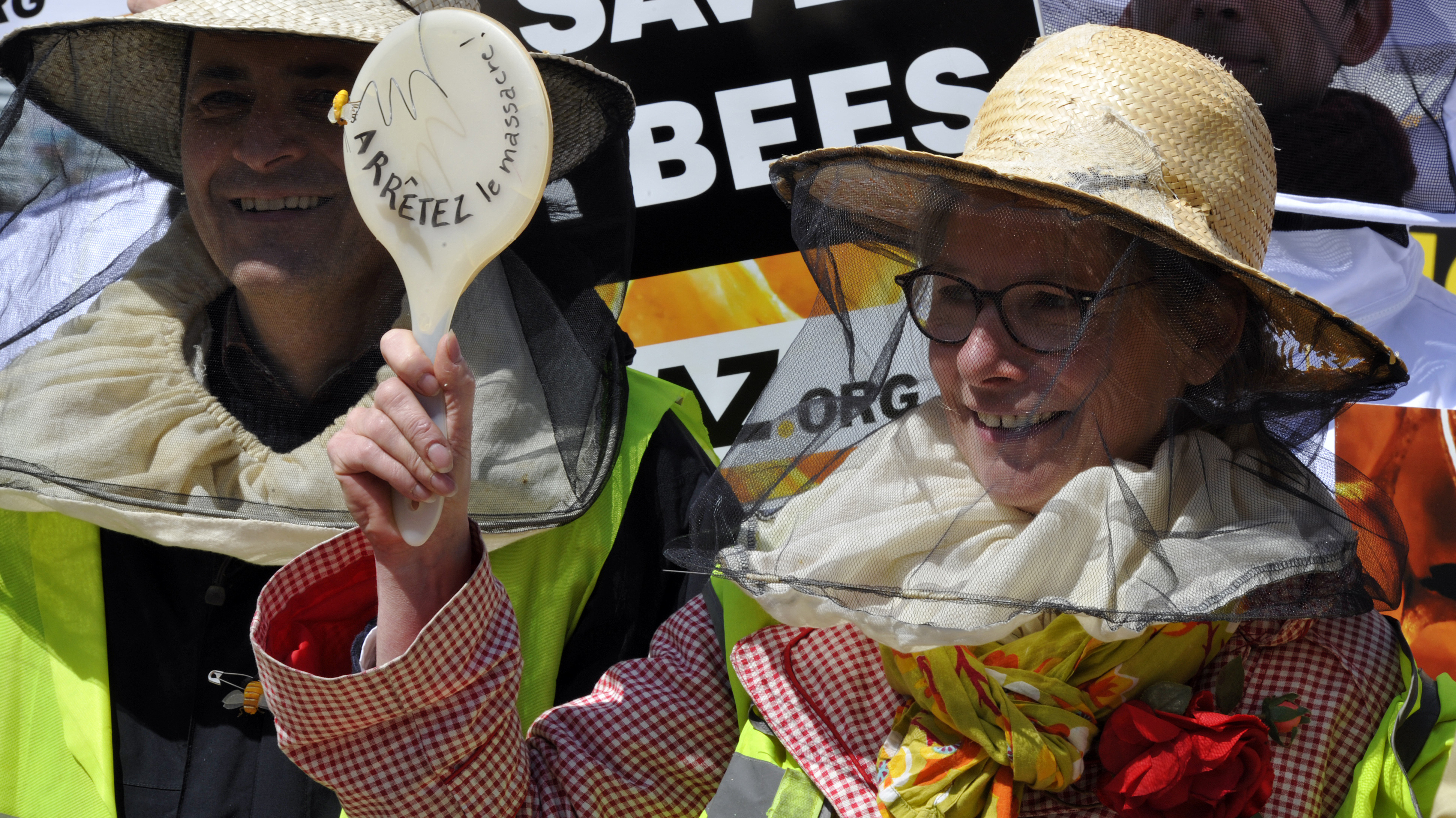 Support WBUREurope Bans Pesticides In Move To Protect Honey BeesBill ChappellApril 29, 2013 ShareBeekeepers demonstrate at the EU headquarters in Brussels Monday, as lawmakers vote on whether to ban pesticides blamed for killing bees. (AFP/Getty Images)