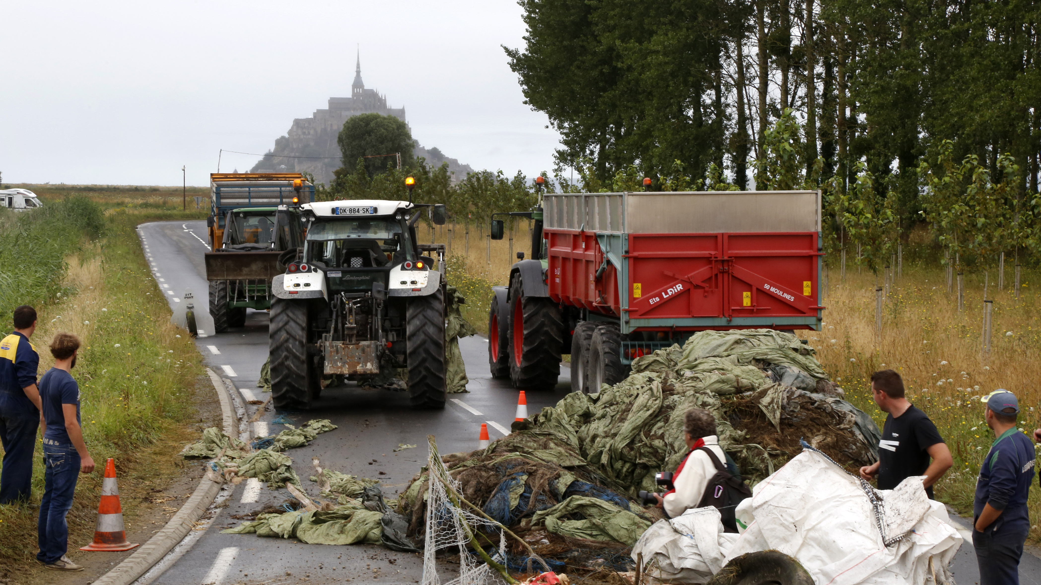 Support WBURIrate French Farmers Block Tourist Sites To Protest Low Meat And Dairy PricesLucy PerkinsJuly 21, 2015 ShareFarmers blocked the road to Mont Saint-Michel, the tourist attraction seen in the distance. (Reuters /Landov)