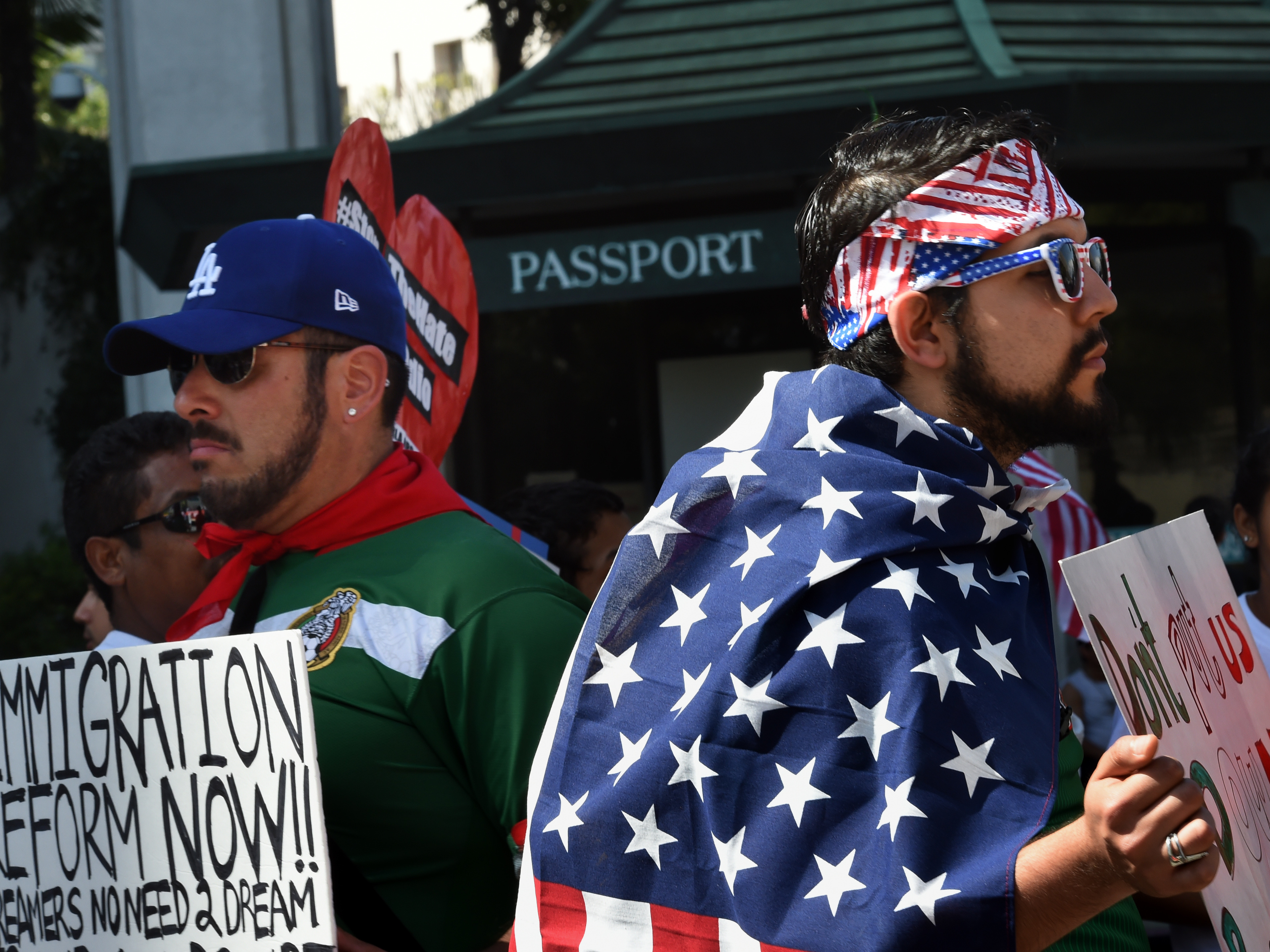 Support WBURWho Is A Good Immigrant, Anyway?Play19:39Download AudioOctober 05, 2016 ShareImmigration rights protesters march during a May Day rally to the Immigration and Customs Enforcement (ICE) detention center in Los Angeles, Calif. in 2016. (AFP/Getty Images)