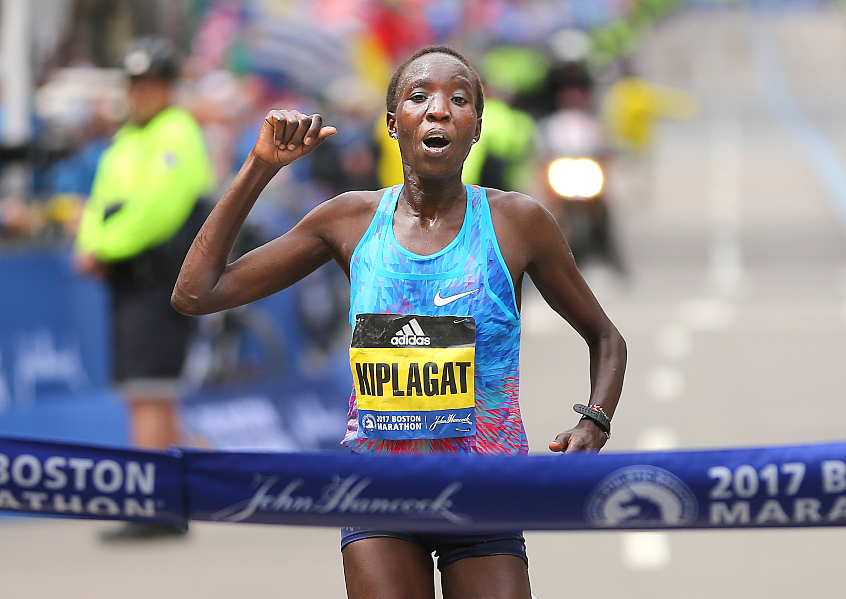 Support WBURBoston Champ Juggles Marathons, 5 Kids, Kenyan FarmJason BeaubienApril 26, 2017 ShareEdna Kiplagat crosses the finish line of the 121st Boston Marathon on April 17. It was her first time running the race. (Boston Globe via Getty Images)