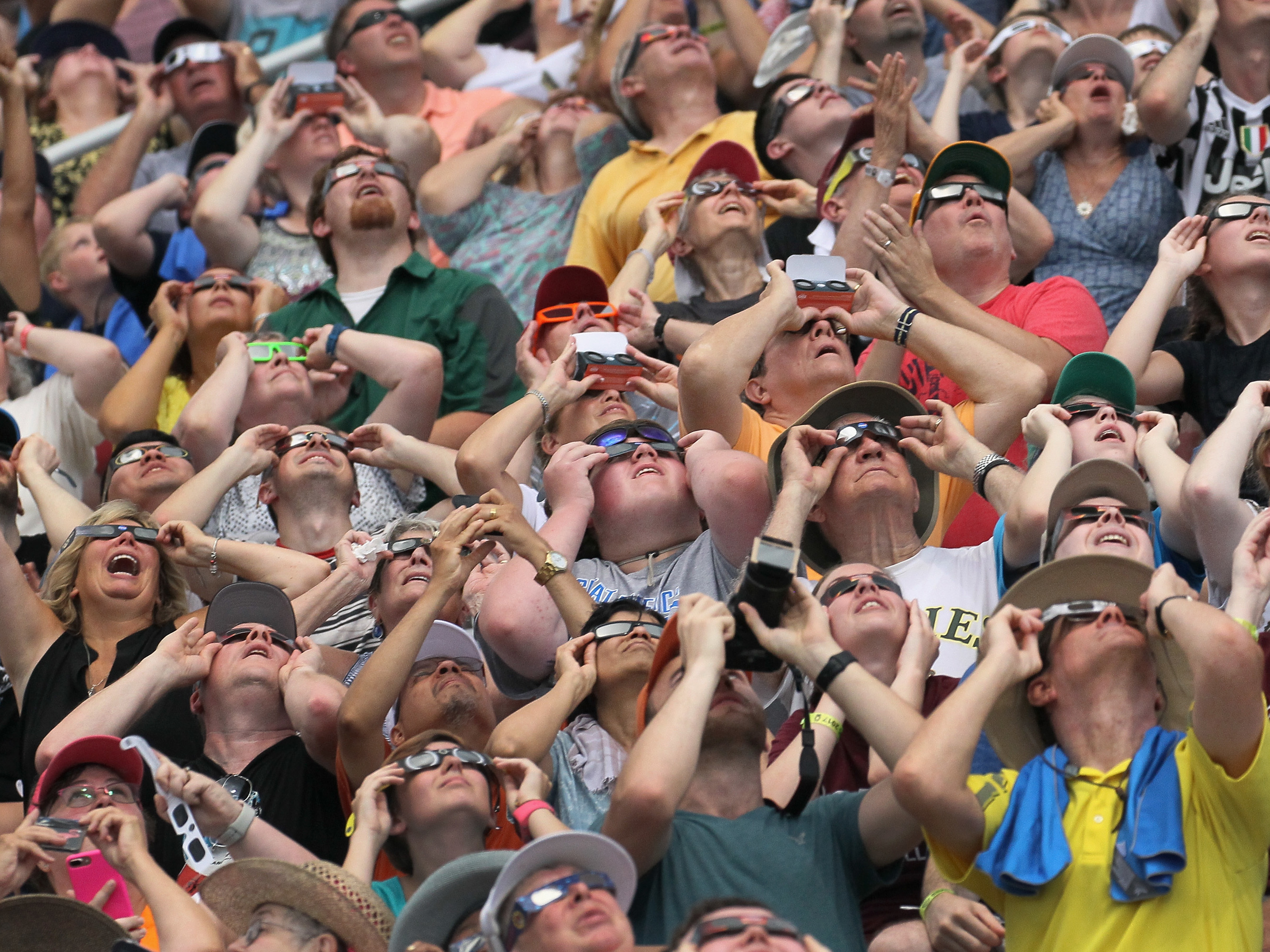 Support WBURHow To Tell If Watching The Eclipse Damaged Your EyesAndrea HsuAugust 21, 2017 ShareCrowds gathered to watch the solar eclipse at Saluki Stadium on the campus of Southern Illinois University in Carbondale, Ill. (Getty Images)