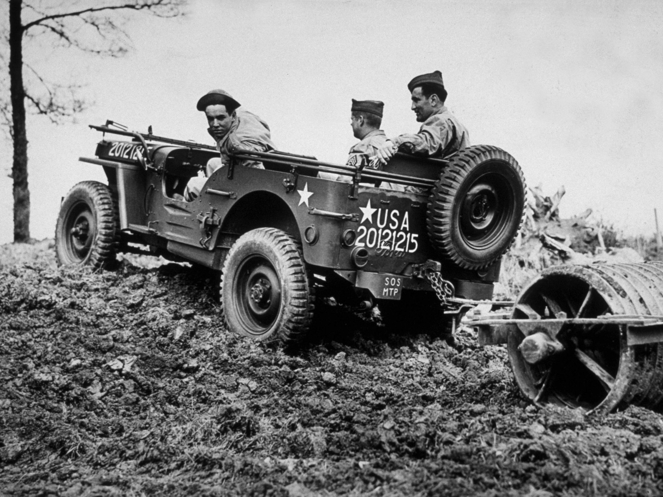 Support WBURJeep: Why This American Icon Could Soon Be Part Of A Chinese CompanyPlay03:52Download AudioAugust 24, 2017Sonari GlintonfacebookEmailAmerican troops use a Jeep in 1943 to clear land for Army camps in England. (Getty Images)