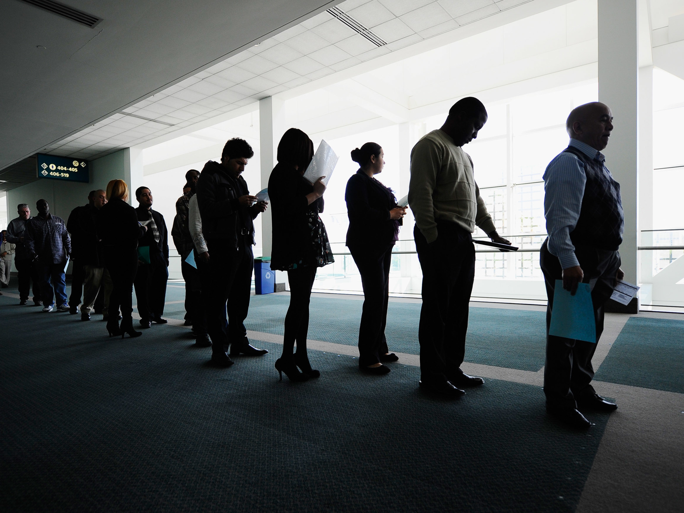 Support WBURUnhappy 10th Anniversary, Great Recession. You Still Hurt UsDecember 14, 2017Marilyn GeewaxfacebookEmailJob seekers line up to enter a career fair in Los Angeles, on Dec. 1, 2010. At the peak of the recession, the unemployment rate hit 10 percent. It's now 4.1 percent. (Getty Images)