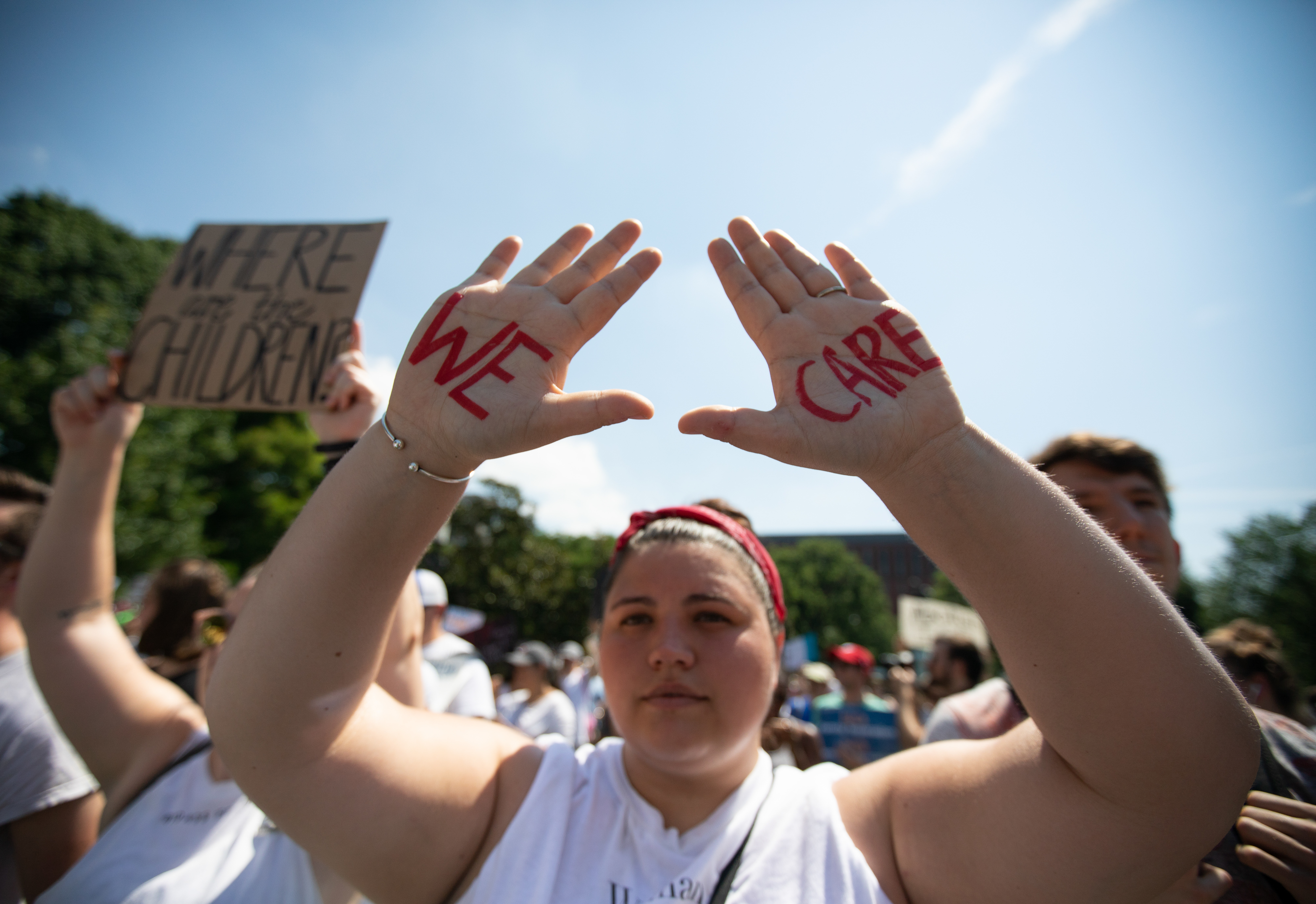 Support WBURFor Women At D.C.'s 'Families Belong Together,' The Protest Was PersonalCecilia LeiJuly 01, 2018 ShareKara Howard, 26, an English-language teacher at Cesar Chavez Public Charter School, was compelled to join the protest because of her students' deportation experiences. (Eman Mohammed for NPR)