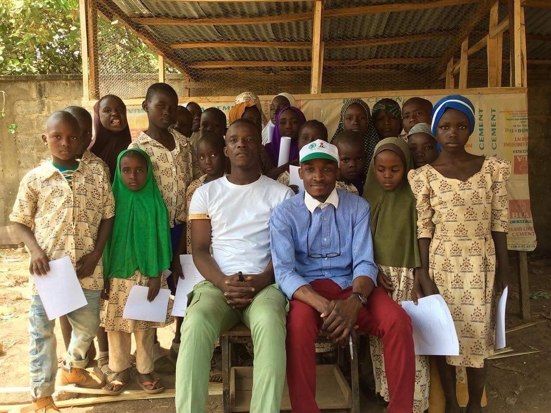 Support WBURWhatever Happened To... The Millennials Who Started A School For Boko Haram Escapees?Linus UnahSeptember 04, 2018 ShareAweofeso Adebola (in white shirt) and Ifeoluwa Ayomide (in cap) pose with some of the kids in their education program in Abuja, Nigeria. (Linus Unah for NPR)