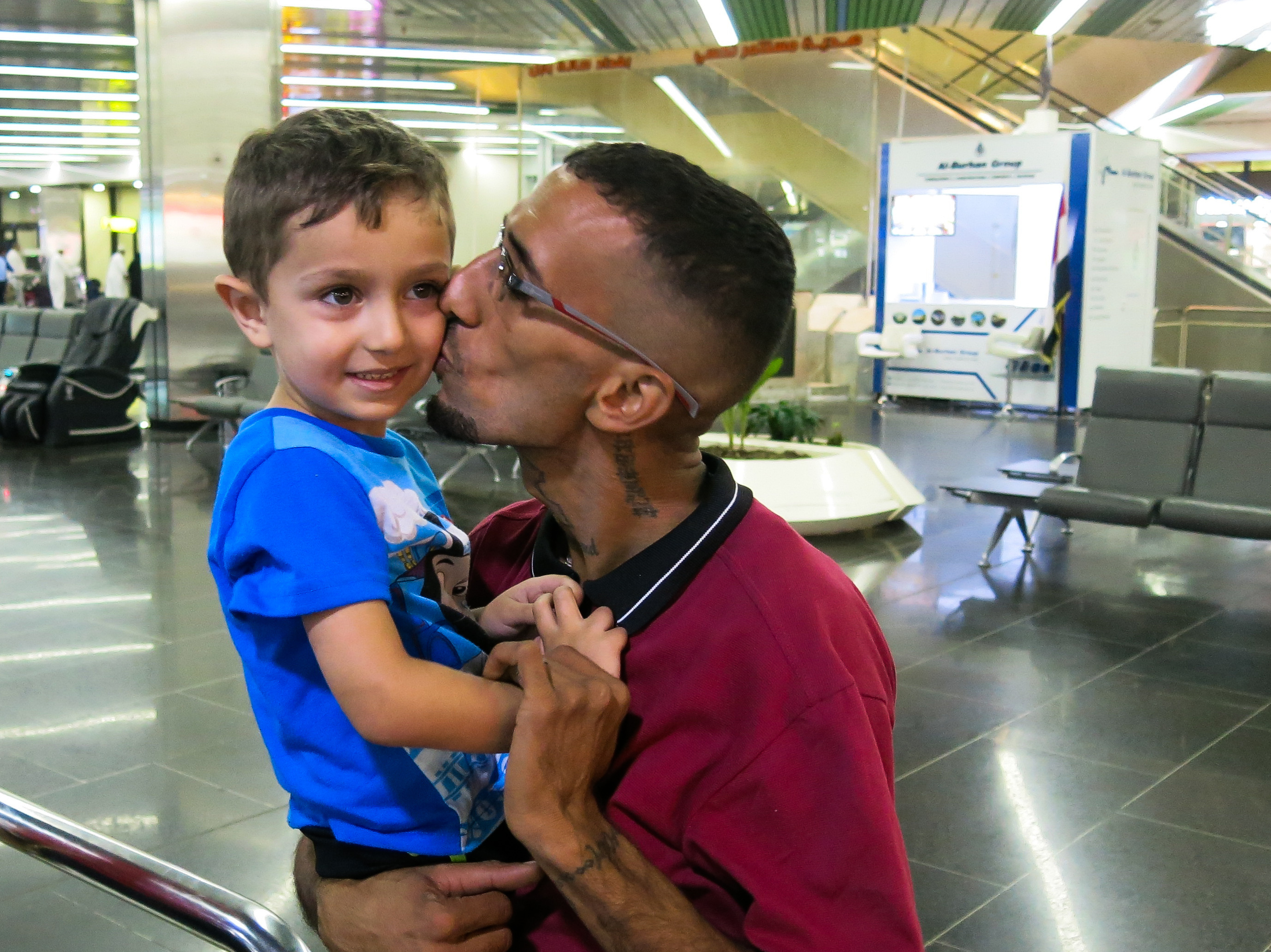 Naser al-Shimary, deported this year to Iraq from the U.S., greets his four-year-old son Vincent at Baghdad international airport. Shimary had lived in the U.S. since he was five years old. He agreed to be deported under a practice halted by a U.S. court this summer. (NPR)
