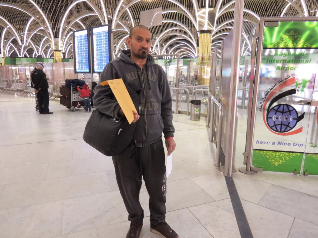 Support WBURIraqi Has Returned To U.S. After ICE Deported Him Against Court OrdersJane ArrafJanuary 31, 2019 ShareMuneer Subaihani at the airport in Baghdad on Tuesday, waiting to board the first of his flights back to the United States. (Ahmed Qusay for NPR)