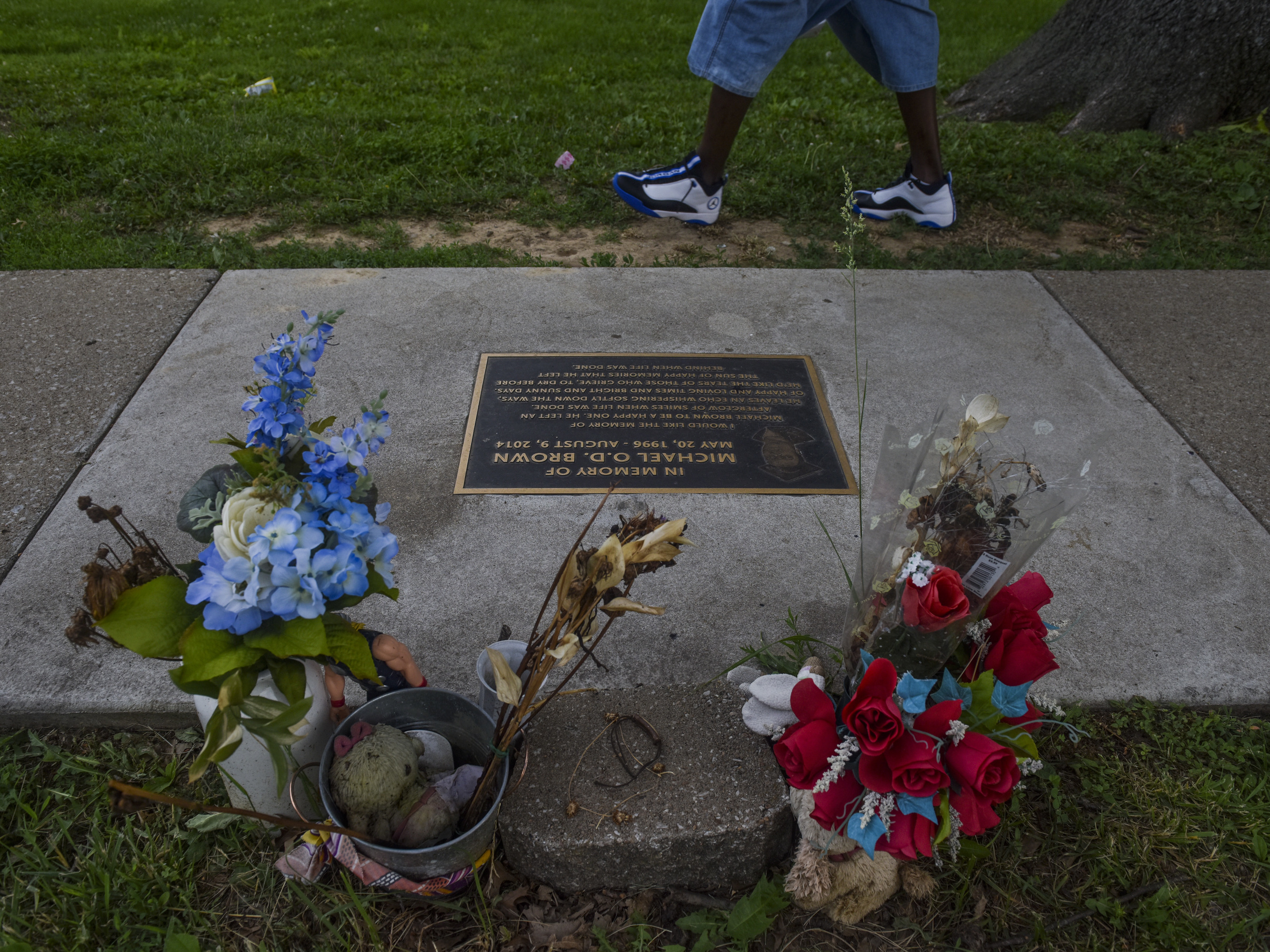 Support WBURAfter The Cameras LeavePlay27:15Download AudioAugust 07, 2019facebookEmailFERGUSON, MO - : A plaque in memory of teenager Mike Brown is embedded in the sidewalk near the Canfield Apartments where Mike Brown killed. (The Washington Post/Getty Images)