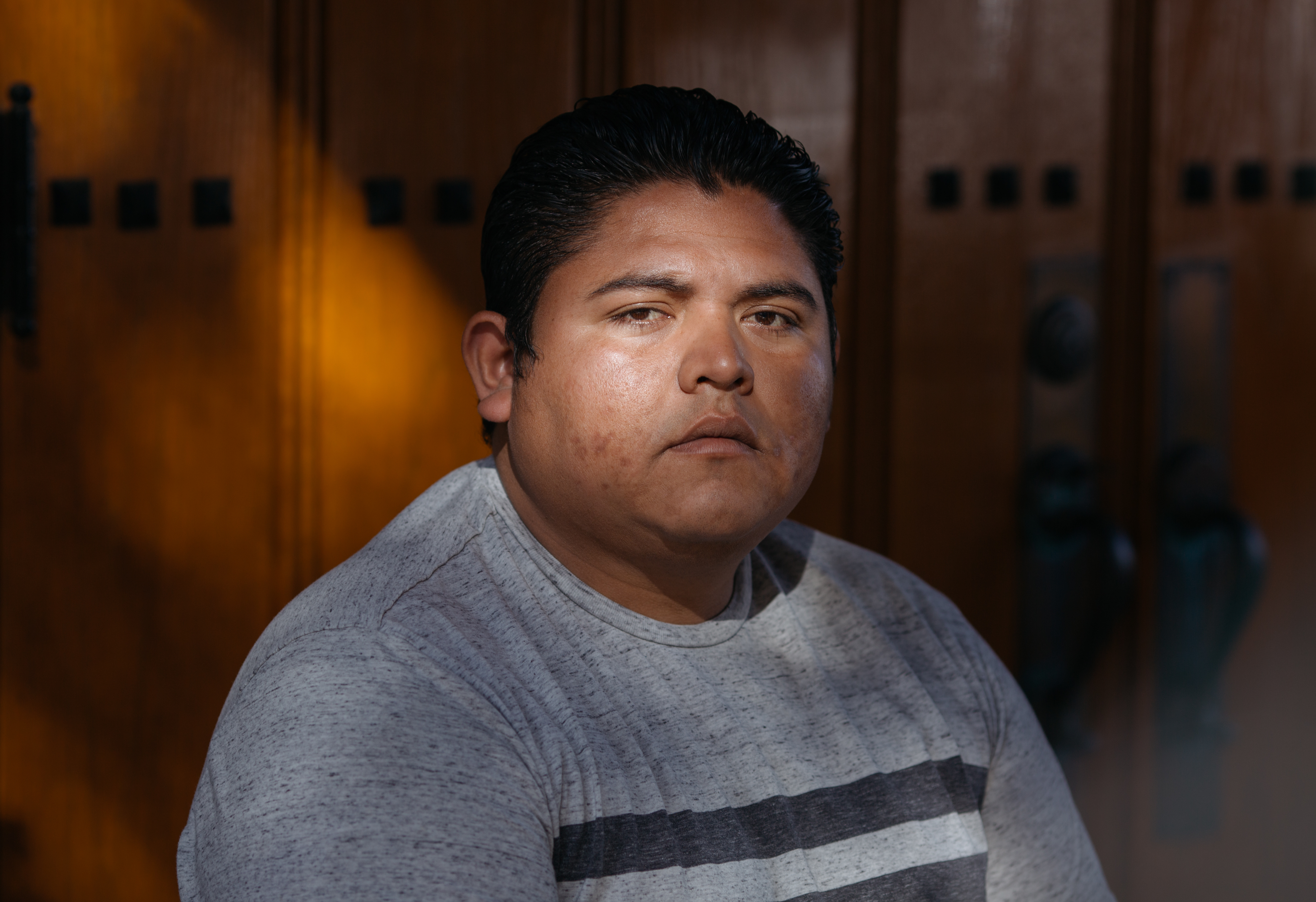 Alexander Antonio Burgos Mejia was detained at the Adelanto ICE Processing Center in 2017, when he went on a hunger strike to protest conditions at the facility. He said he and the other detainees suffered burns and other injuries after GEO Group staff used pepper spray. "I will never forget seeing the faces of my friends, seeing them crying," he said. (Jessica Pons for NPR)