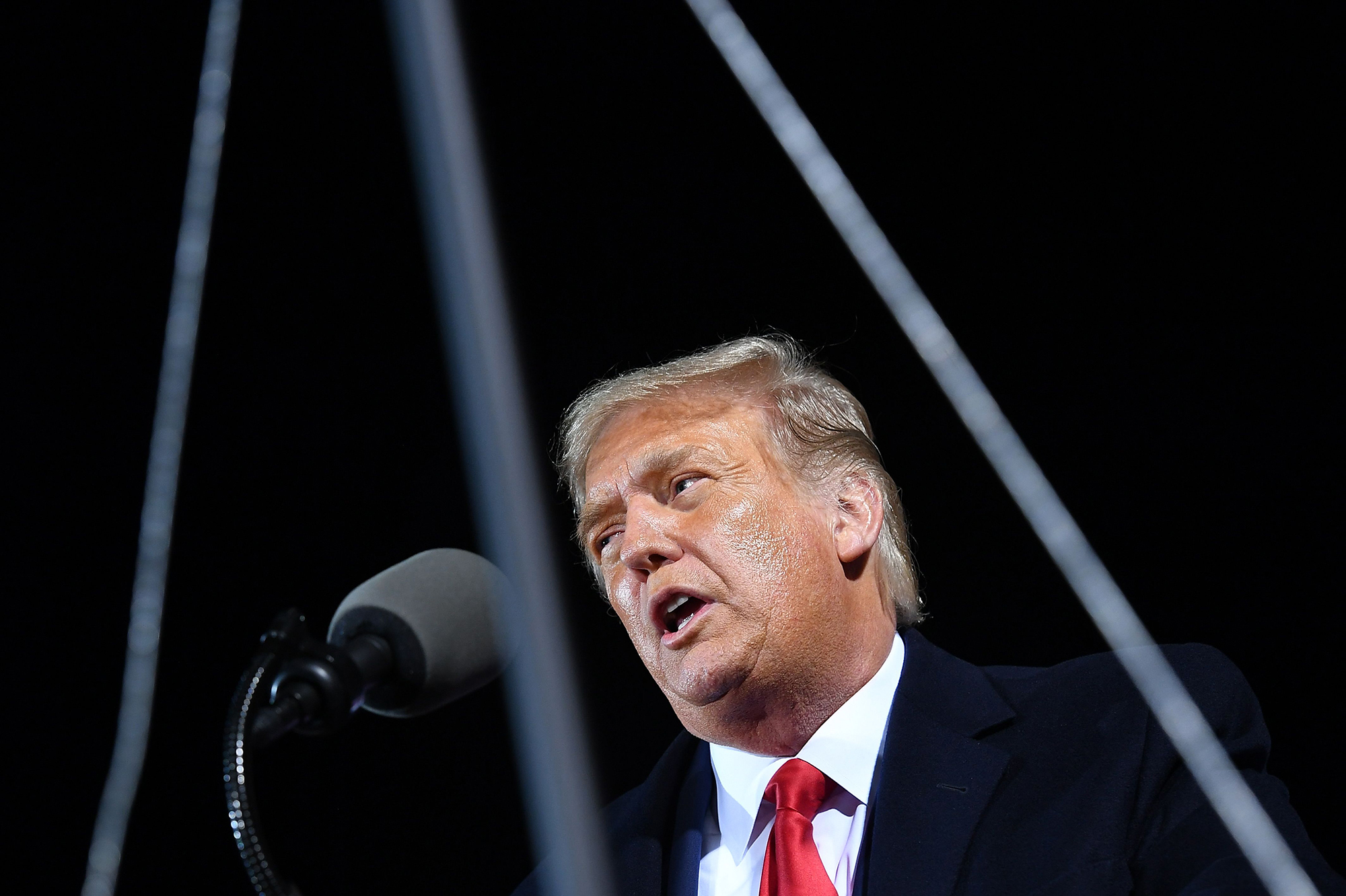 President Donald Trump speaks Wednesday at a campaign rally at Duluth International Airport in Minnesota. The president, who has tested positive for the coronavirus, "remains fatigued but in good spirits," White House physician Sean Conley said Friday. (AFP via Getty Images)