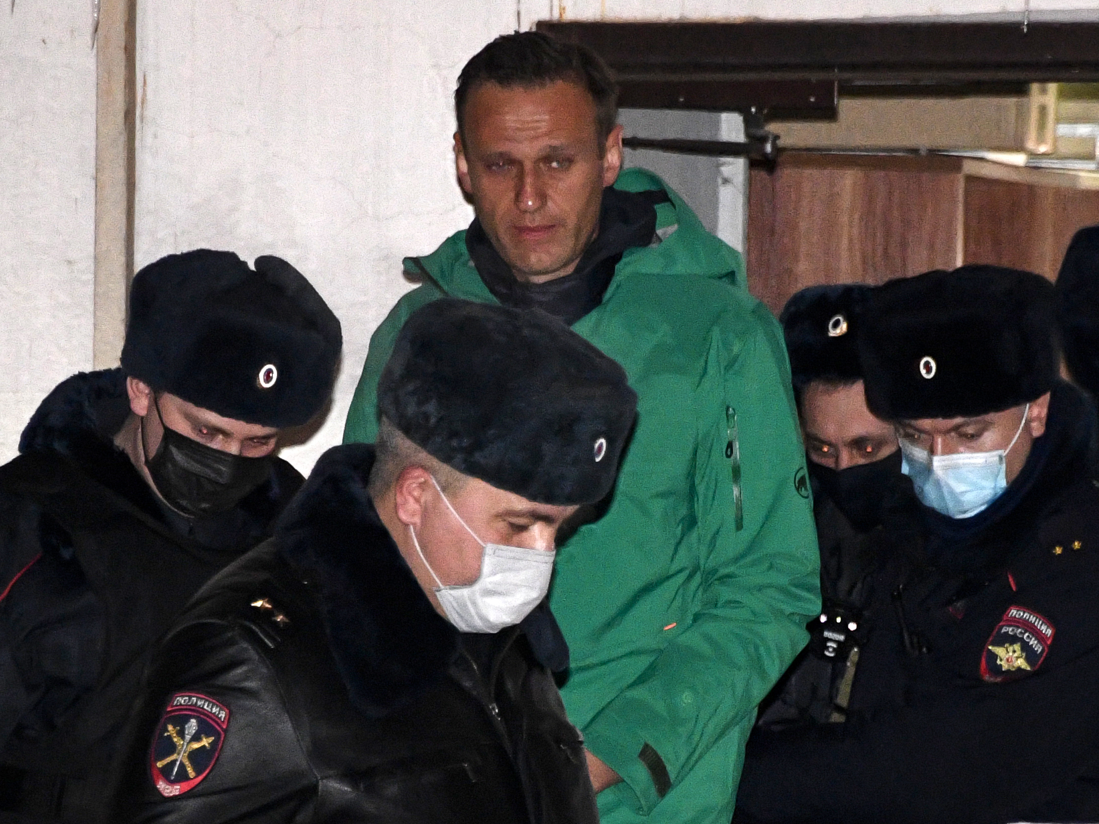 Support WBURAfter Arrest, Kremlin Critic Navalny Calls On Supporters To 'Take To The Streets'Lucian KimJanuary 18, 2021 ShareOpposition leader Alexei Navalny is escorted out of a police station in Khimki, outside Moscow, following the court ruling that ordered him jailed for 30 days. (AFP via Getty Images)