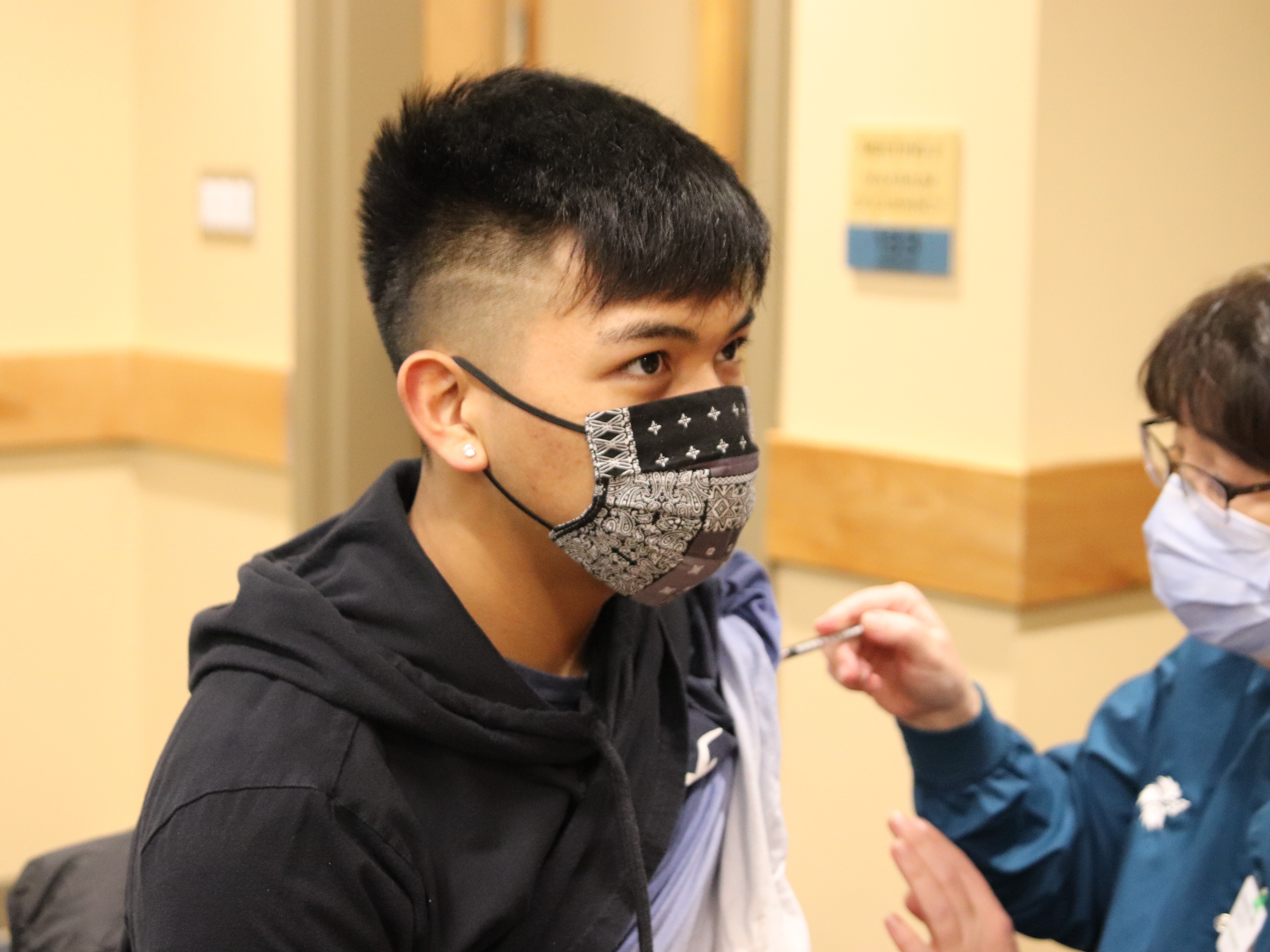 Support WBURAlaska Town Now Vaccinating Everyone 16 And OlderPlay03:23Download AudioKatherine RoseFebruary 28, 2021 ShareSeventeen-year-old Bradley Westlock receives his second COVID-19 vaccine shot. He and other teens in Sitka, Alaska, are eligible now that higher risk populations have already received the vaccination. (KCAW)