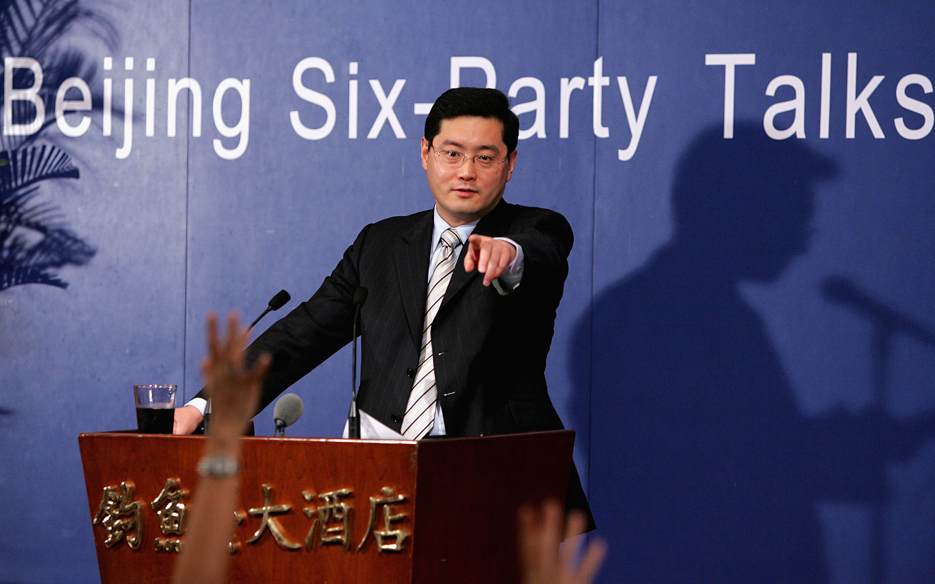 Qin Gang fields questions during a news conference around the Six-Party Talks on North Korea's nuclear program in Beijing in 2005. He served as spokesperson for the Chinese delegation. (Getty Images)