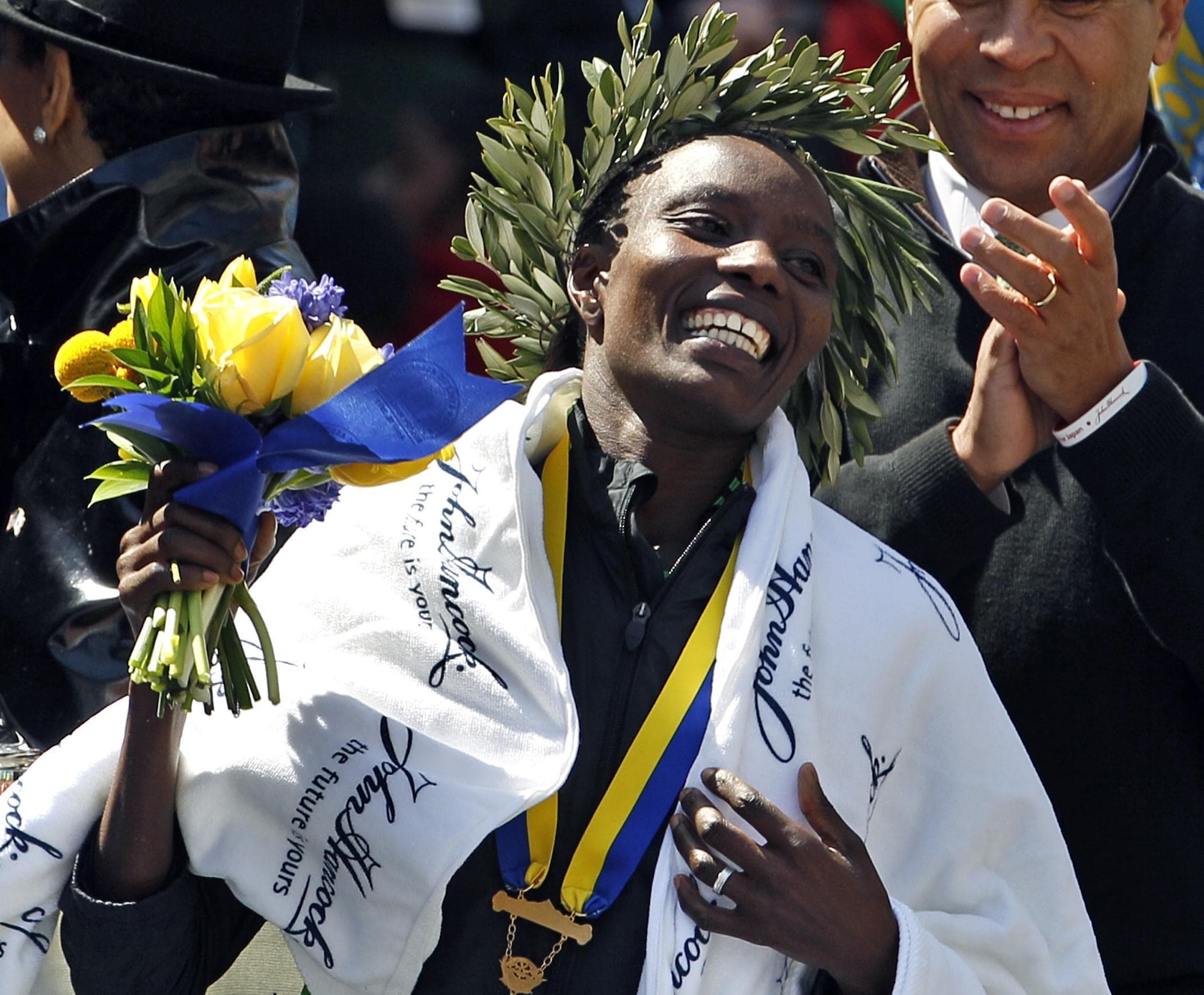 “This is the reality of current humanity,” he said. “But we will never forget the spirit of the marathon. This is the reason that the first prize is what it is, the wreath. And after follow the others.”