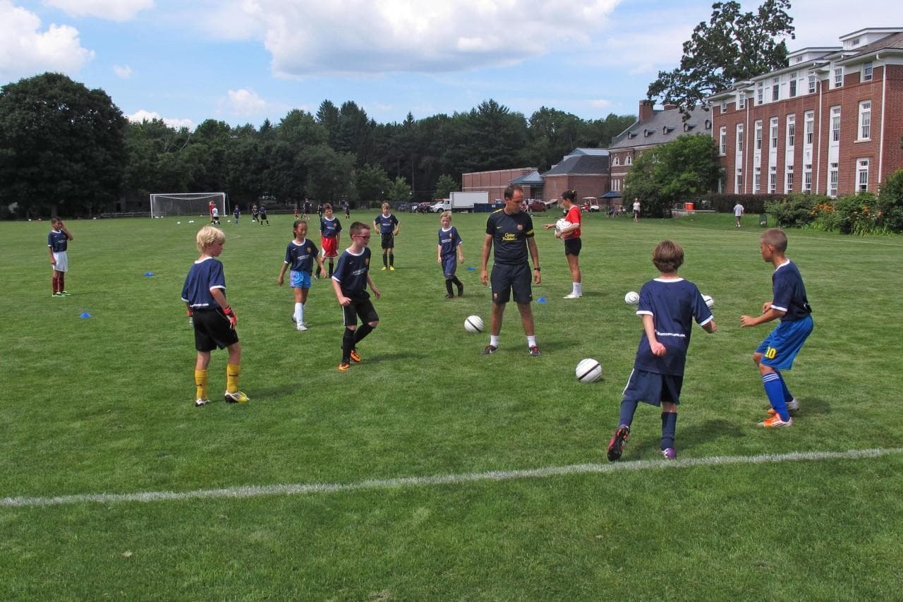 On Monday afternoon across the vast, green playing fields of the Middlesex School in Concord, Mass., 140 boys and girls between the ages of 8 and 16 are tapping soccer balls to each other in small groups. One of the boys is 10-year-old Michael Sawicki. Mike Sawicki, Sr. watches from the shade of a tree and says it was easy to choose which of the zillion or so available soccer camps his son should attend.