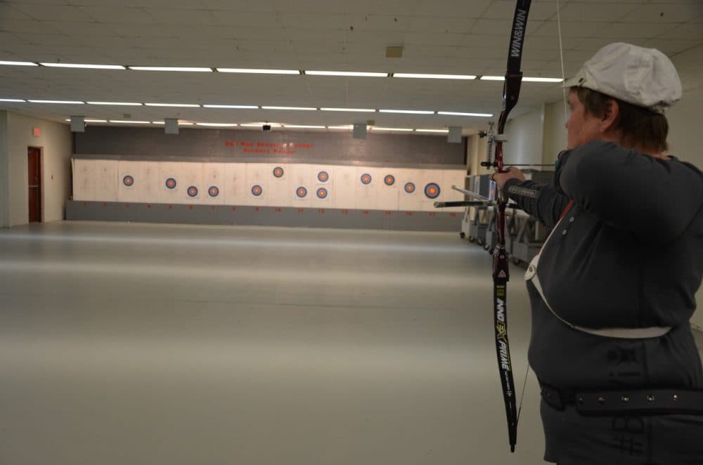 On a recent weekday afternoon, Anne Abernathy is navigating a set of stairs at the Bull Run Public Shooting Center in Centreville, Va. With one hand on the railing and the other on a cane, Abernathy slowly picks her way down the steps leading to the subterranean archery range.