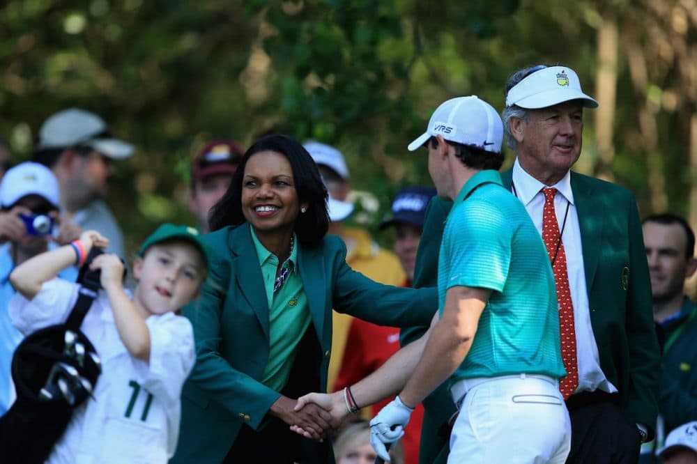 You know, Condi Rice is having the time of her life here. She of course is an avid golfer. She shows up everywhere. Avid sports fan. She's at the women's Final Four. She's on the committee to pick college football playoff teams starting this coming season. So really she's everywhere and has become the face of the course. Last year, she was this force. Everywhere you went she was there greeting fans, greeting other members. Very visible, very smart move on the part of Billy Payne who's the chairman of Augusta National. Now you've got women and this very famous woman — former Secretary of State — let's let the world see that we have her. And I think that's why there is progress because they do understand that they were far behind the times.