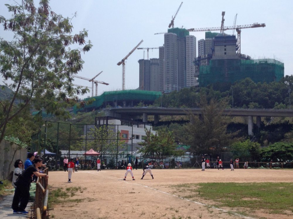 Outfielder Jason Choi says the limited access can’t stop him from practicing. Choi lives in Tai Koo Shing, one of Hong Kong’s largest housing developments — there are 61 towers, nearly 13,000 units and a lot of security guards roaming around. So Choi opts to stealthily toss a tennis ball against a wall near the estate’s quiet back gate.