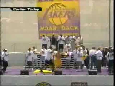 And, after the Lakers won the 2001 NBA Championship, he blessed us with this moment at the victory parade. Keep your eyes on current Lakers assistant coach Mark Madsen dancing behind Shaq in the Dad jeans.