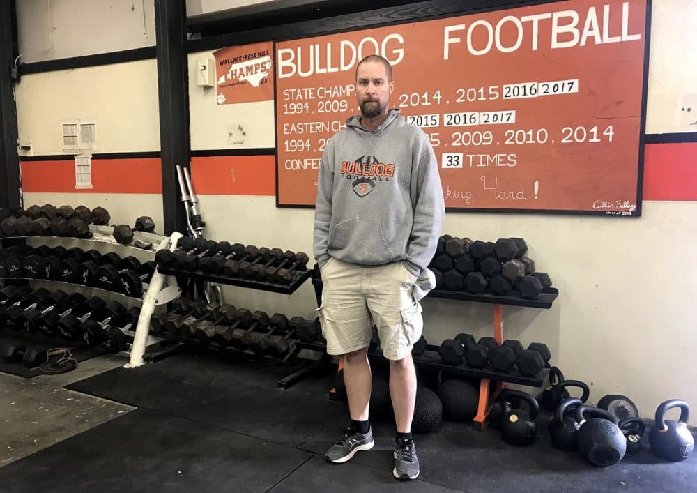 "Our school is just hardworking, poor country folks," says Kevin Motsinger, the head football coach and weightlifting instructor at Wallace-Rose Hill.
