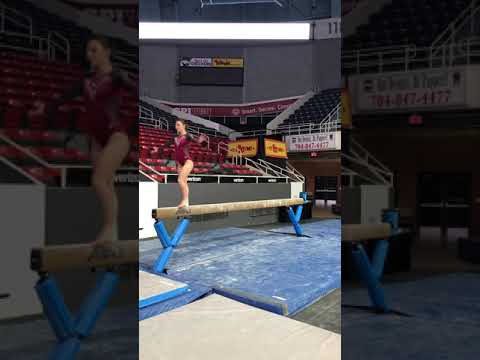 When she got back to Johnstown, Bodenschatz hopped up on a balance beam in front of the girls she was coaching. And she decided to show off a crazy skill from her competition days: a full-twisting back handspring, landing not on her feet, but catching the beam between her legs. Many people who see it performed for the first time gasp, because it looks terrifying. But she pulled it off.