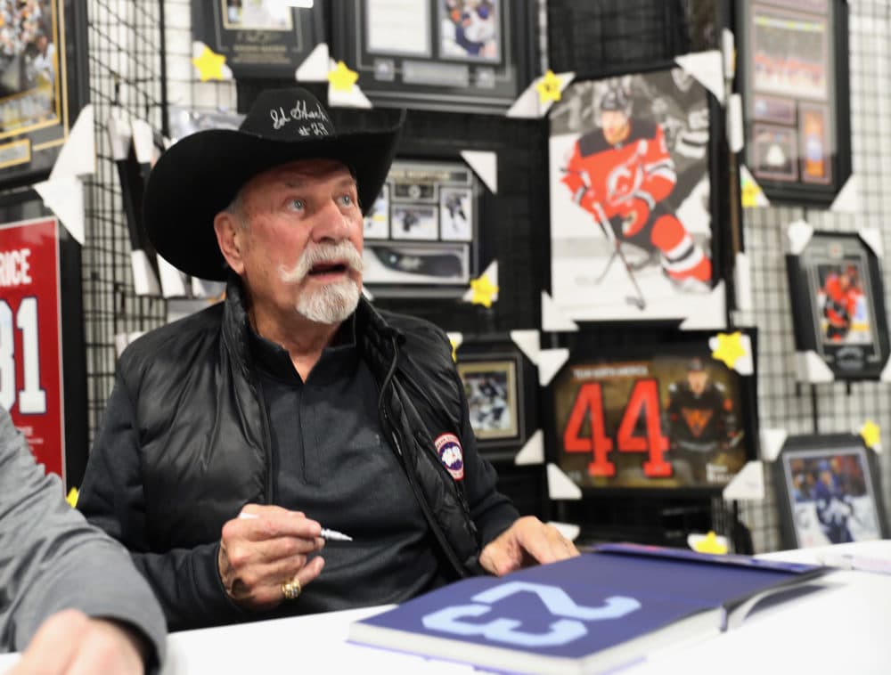 "No. After that 26 goal season, he had other 20 goal seasons. Eddie couldn't seem to hold his place in the NHL with one team for very long," Brian says. "I know in Boston, when he played there, he was selling hats as an avocation. In the summer months, he was working for some hat company. And he criticized the team owner in Boston for wearing the — well, excuse the word, but the 'crappiest' hats in the world. And, of course, he was traded to L.A. about six weeks later. So I don't think the owner liked the comments he made about the hats he was wearing."
