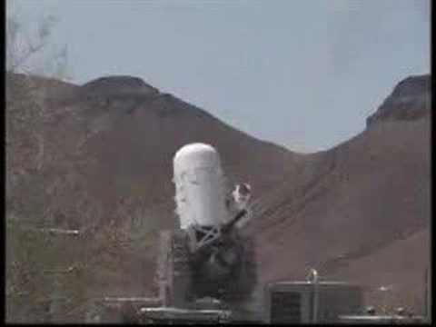 The CRAM, or Counter-Rocket, Artillery and Mortar, has been used against insurgent attacks in Iraq. It's sometimes referred to as "R2 D2," after the Star Wars droid, given its round, turret shape. It spots incoming shells and uses a spray of fire to shoot them down. Developed by Raytheon, here it is in its test phase: