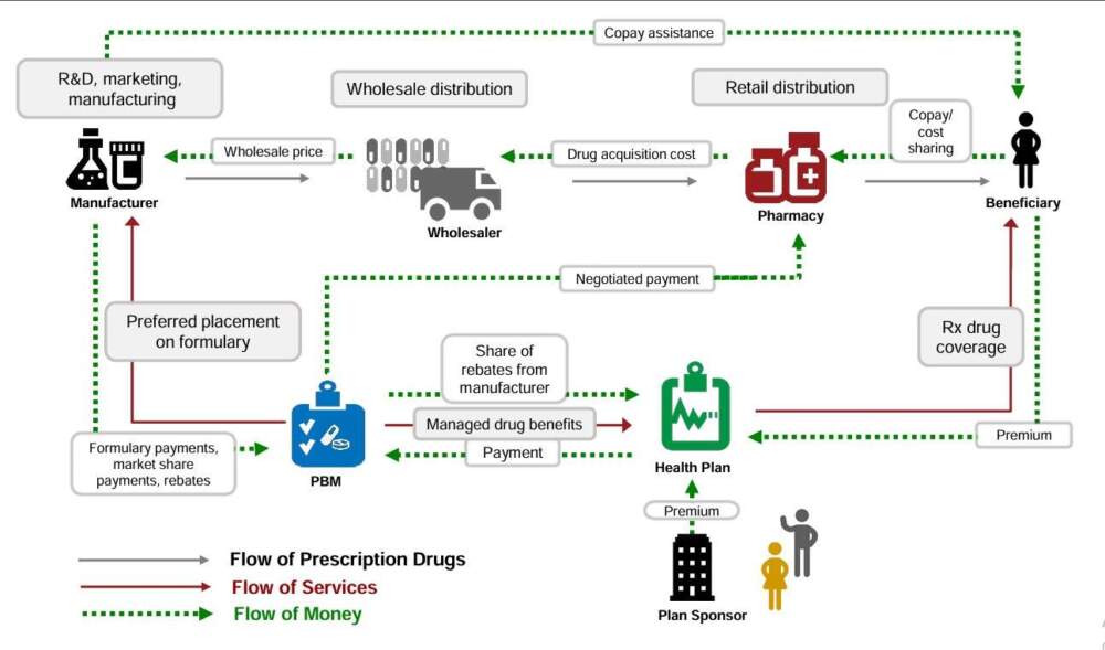 There's more touch points than I think you might appreciate if you didn't have this Set of boxes and arrows and realize just how complex this is, but they're essentially doing three major functions in terms of those financial negotiations. 1, is they're negotiating or determining what the drug manufacturer, what are any rebates or after the fact discounts that the manufacturer is going to give back to the PBM.