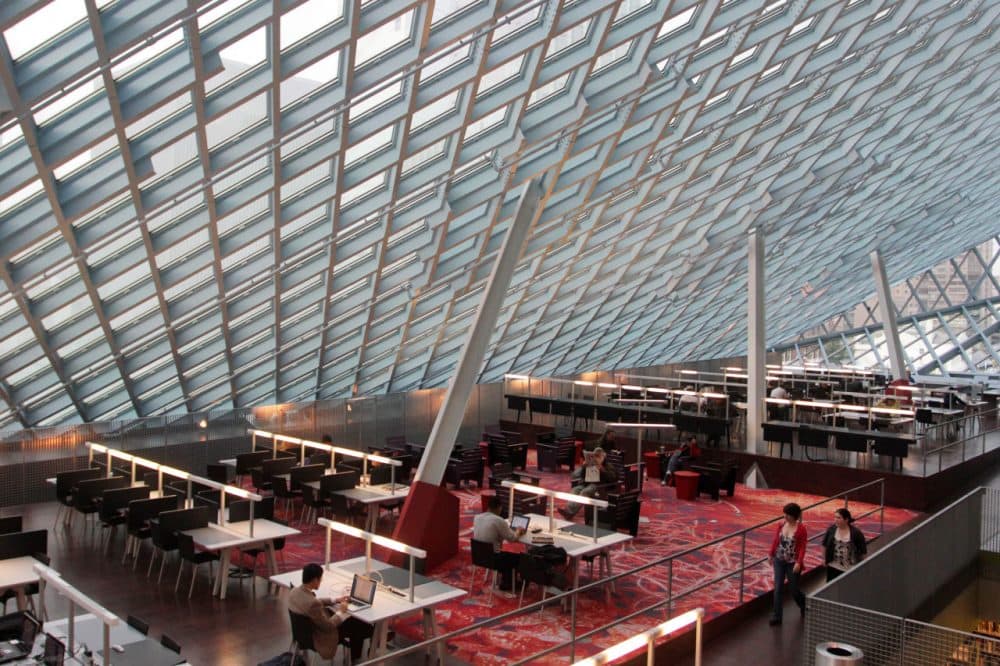 JP: "We need to maintain a public option. I think what's so great about what happened in 1850 when Boston launched the first major municipal public library in the world, right here, was there was something created for the public that meant that information and knowledge and books — and now CDs and DVDs and everything else — are free to all. And we really need that public option in a digital age. It's not actually that easy to do it, especially when things that are like Amazon and Google float to the top of what everybody — particularly young people, but not exclusively — reach to first...If you consider the importance of the divides we have in our society — making sure that those don't get exacerbated, that's very important, but I also think somebody making choices, making recommendations, helping us learn, who don't actually have a profit motive at their core, I think that's so important. So, in a way, libraries are an extension of schools, of other civic institutions, of — honestly — public radio or institutions like this in journalism that actually have, at their core, informing and engaging a community. Libraries are a key part of that."