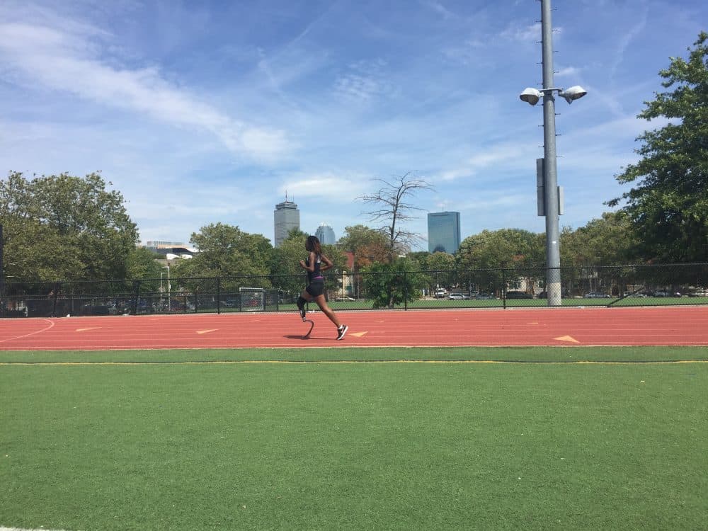 But until last November, Ayanbeku didn't even know how to run. Her love affair with running began with a chance meeting with another Paralympian, Jerome Singleton, and the former longtime track coach at Northeastern University, Sherman Hart.