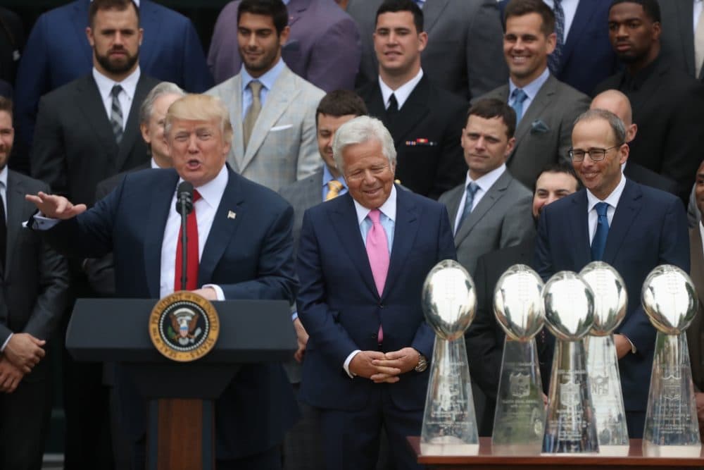 One noticeable absence was Tom Brady. Brady said he had to attend to "family matters" and thanked the president for hosting and supporting the team for "as long as [he] can remember," according to a statement released to ESPN.